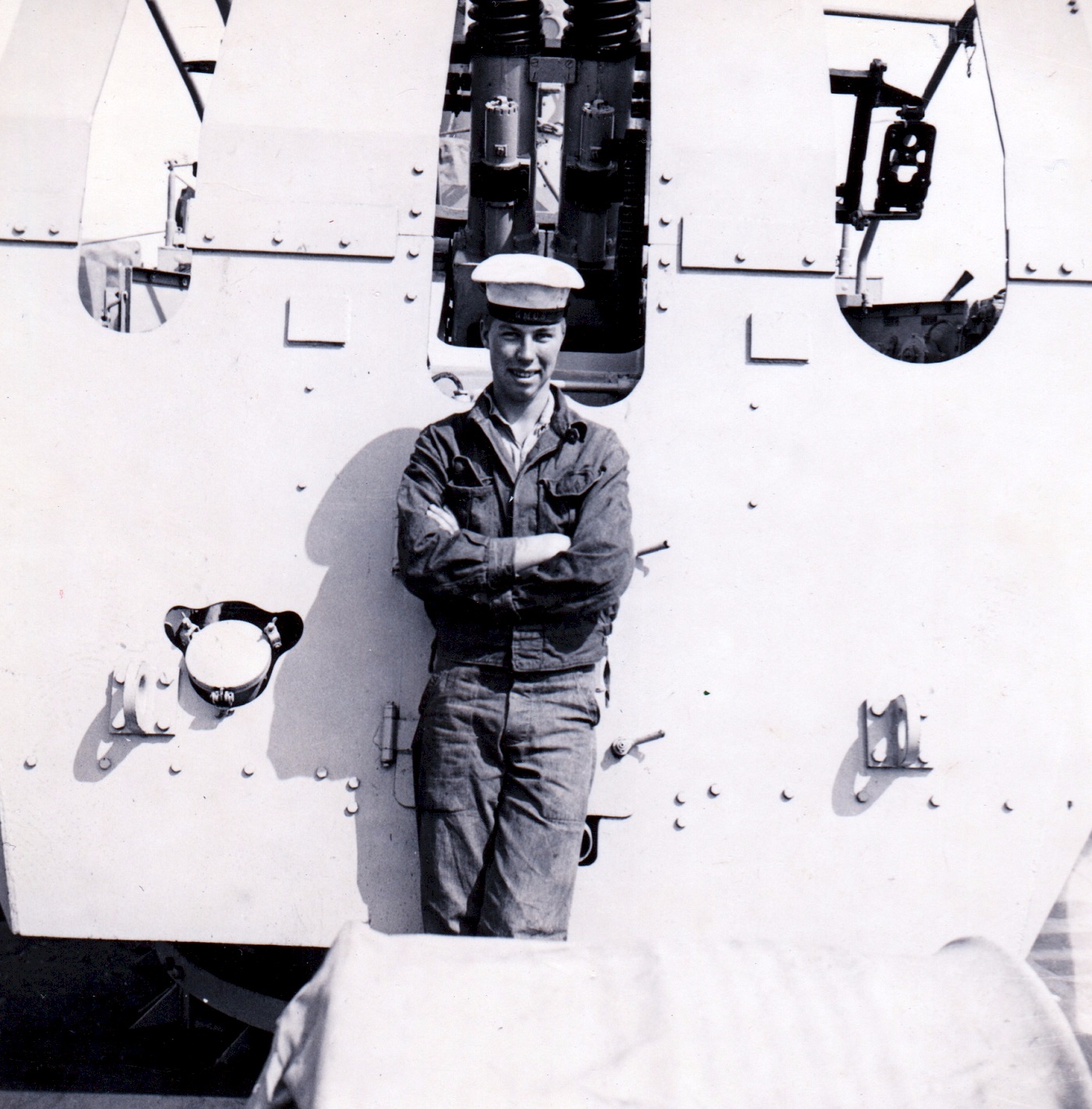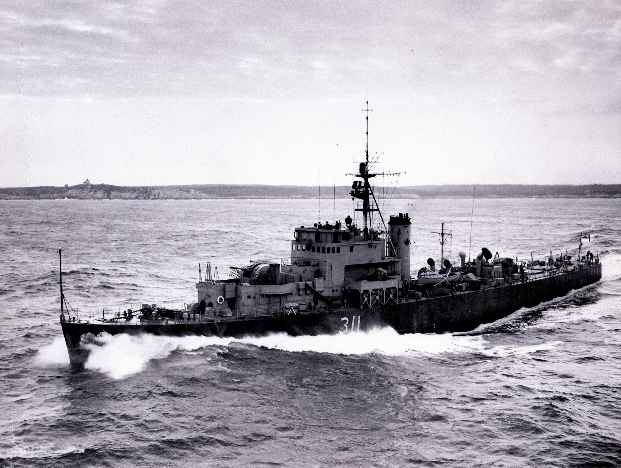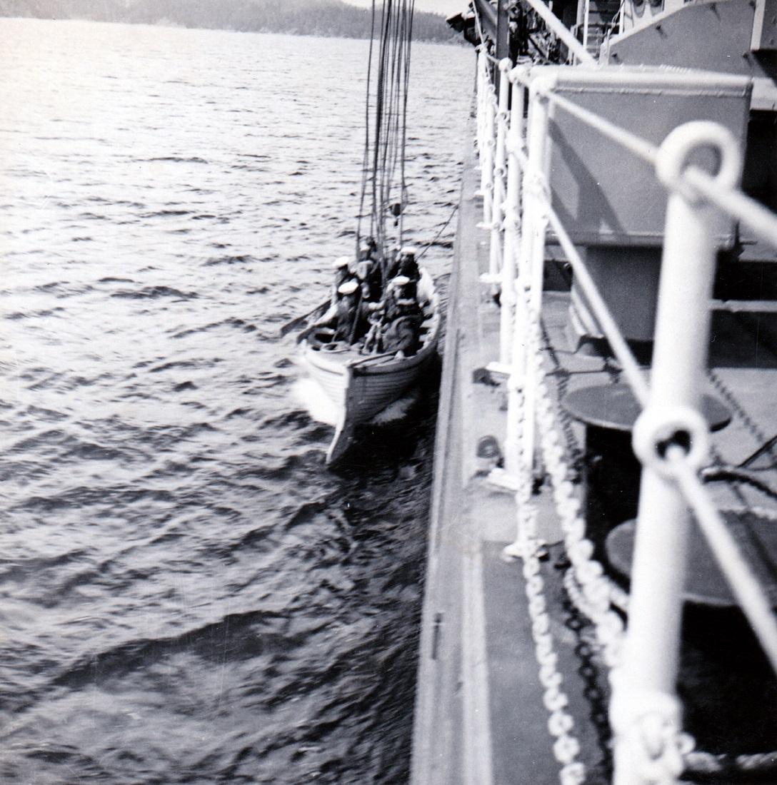 (TM06) HMCS STETTLER 311 conducting sea trials off Halifax, Feb 1954 (TM07) AB.EM Moller by the twin bofors mount on HMCS STETTLER 311 (TM08) Twin Bofors mount on HMCS STETTLER 311 (TM09) White Ensign on HMCS STETTLER 311 (TM10) Conducting drill with ship's whaler - HMCS STETTLER 311