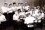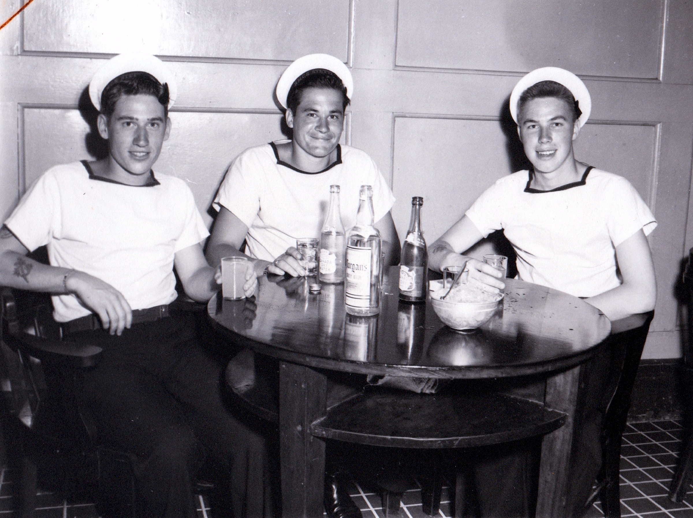 (TM11) Ted Moller having a cool one ashore in Panama at Sloppy Joe`s (TM12) Sailors from HMCS STETTLER 311 ashore at Sloppy Joe's in Panama - Ted Moller on the right (TM13) Sailors from HMCS STETTLER 311 ashore at Sloppy Joe's in Panama (TM14) Jim Garrett and Don Weedon, Stoker's mess, HMCS STETTLER 311, Panama (TM15) Back: Newbold, Clynt Pringle, unknown, Ferguson, Front: Scotty, Joe Mondor, Stoker's Mess, HMCS STETTLER 311, Panama (TM16) Newbold (left) and Clynt Pringle, Stoker's Mess, HMCS STETTLER 311, Panama