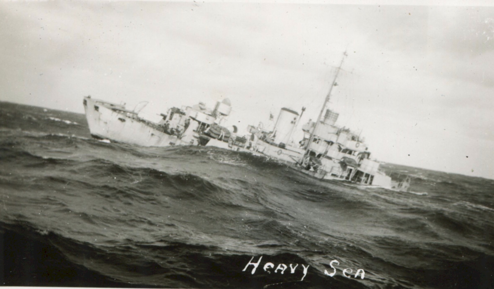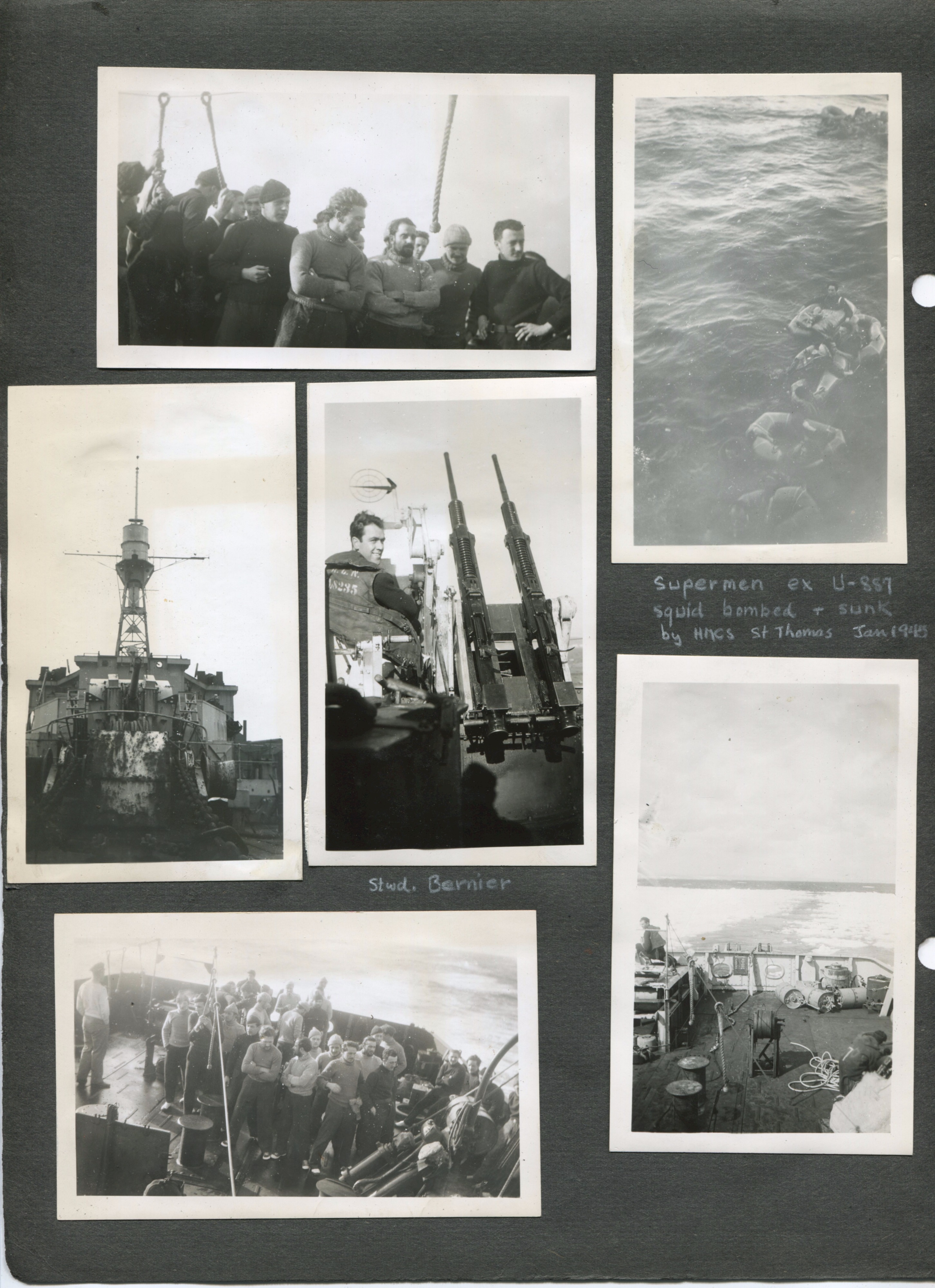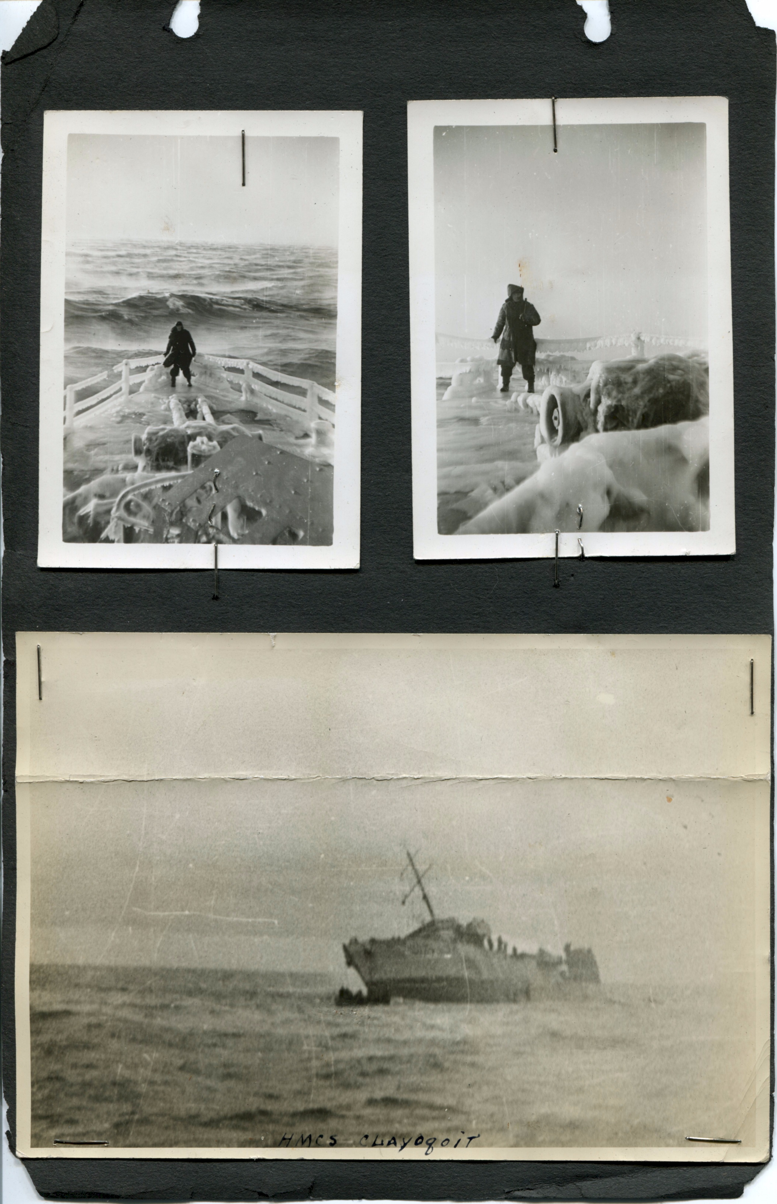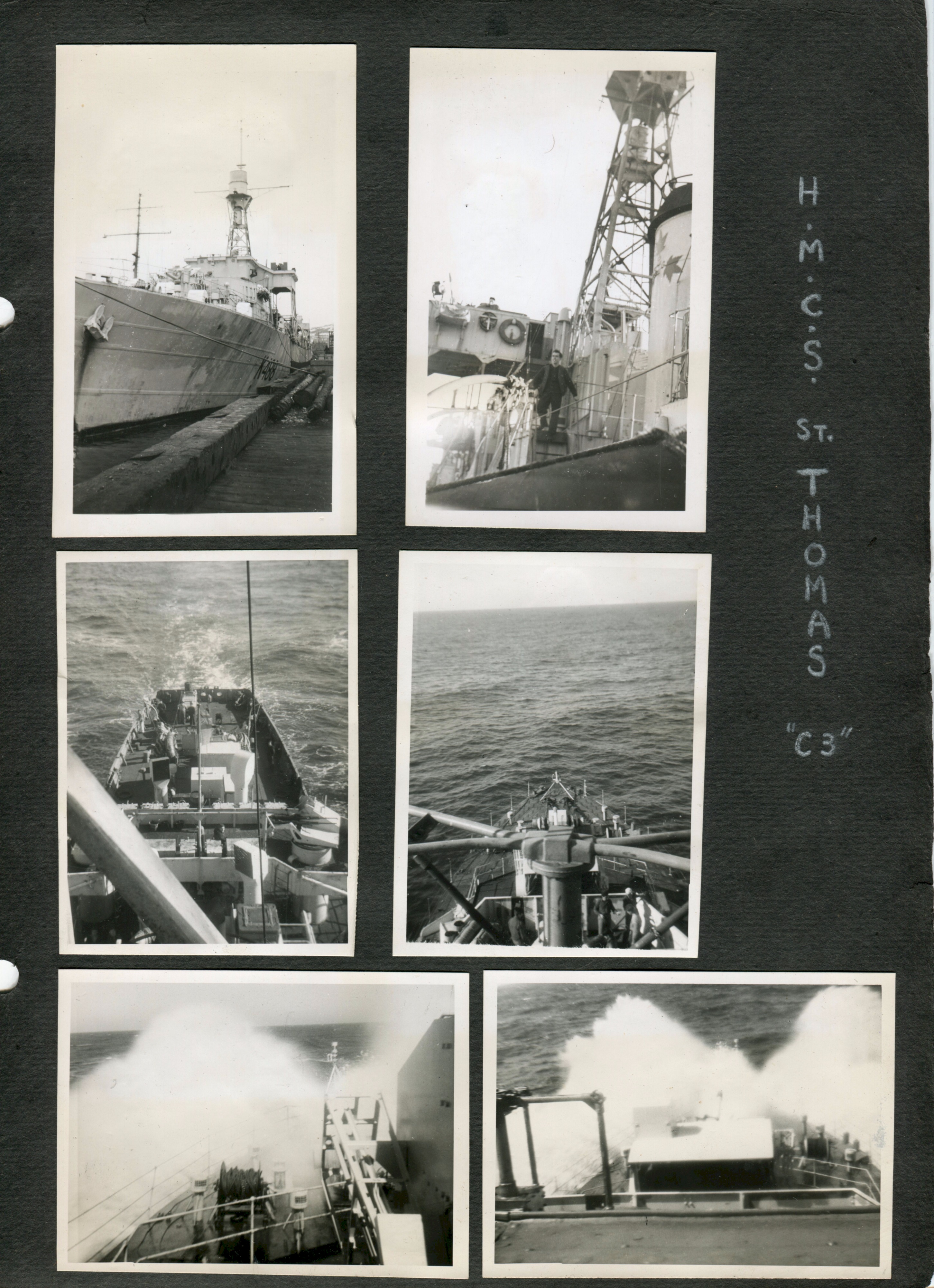 (WM48-WM59) HMCS ST THOMAS taking a wave over the bow (WM50) Stwd Bernier on the AA gun on HMCS ST THOMAS (WM51) HMCS ST THOMAS transiting an ice field
