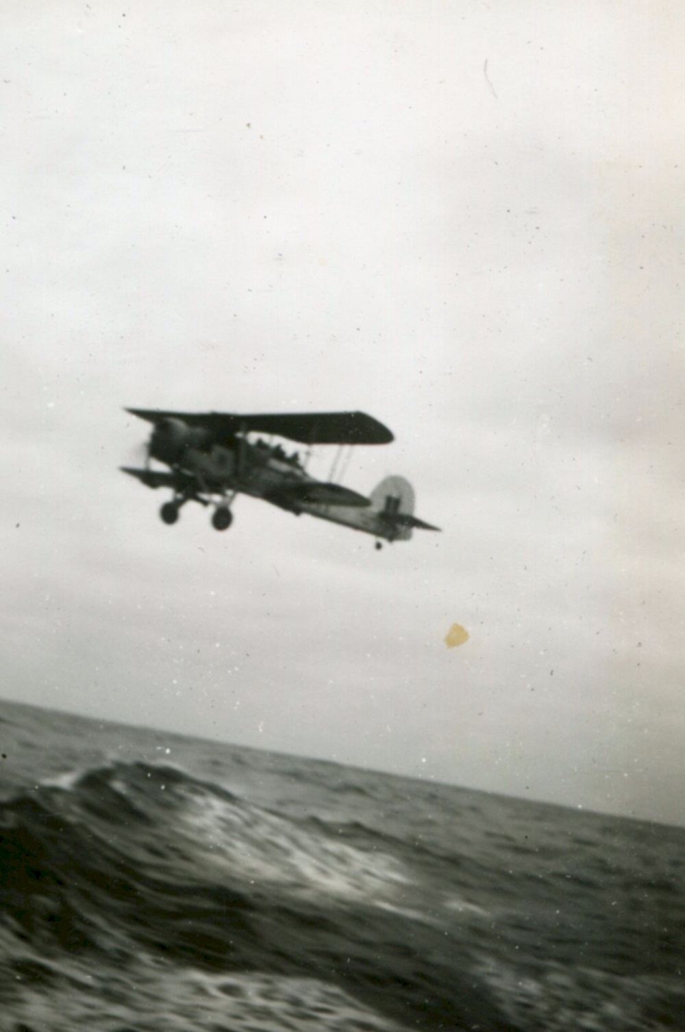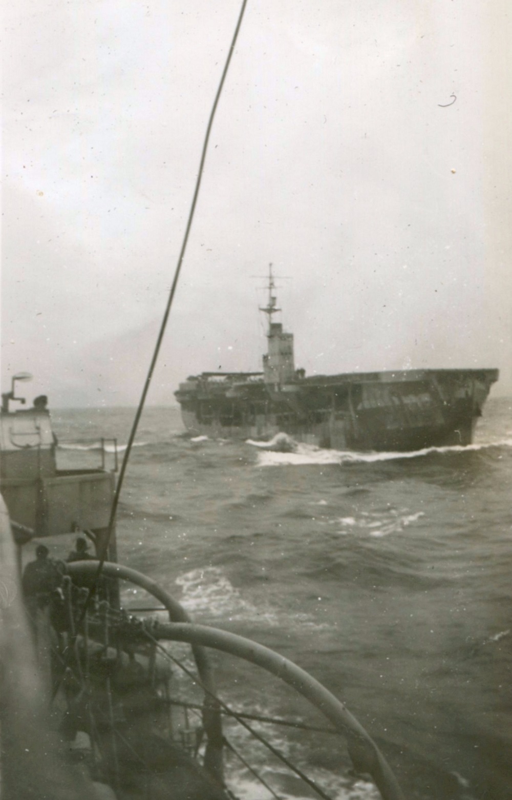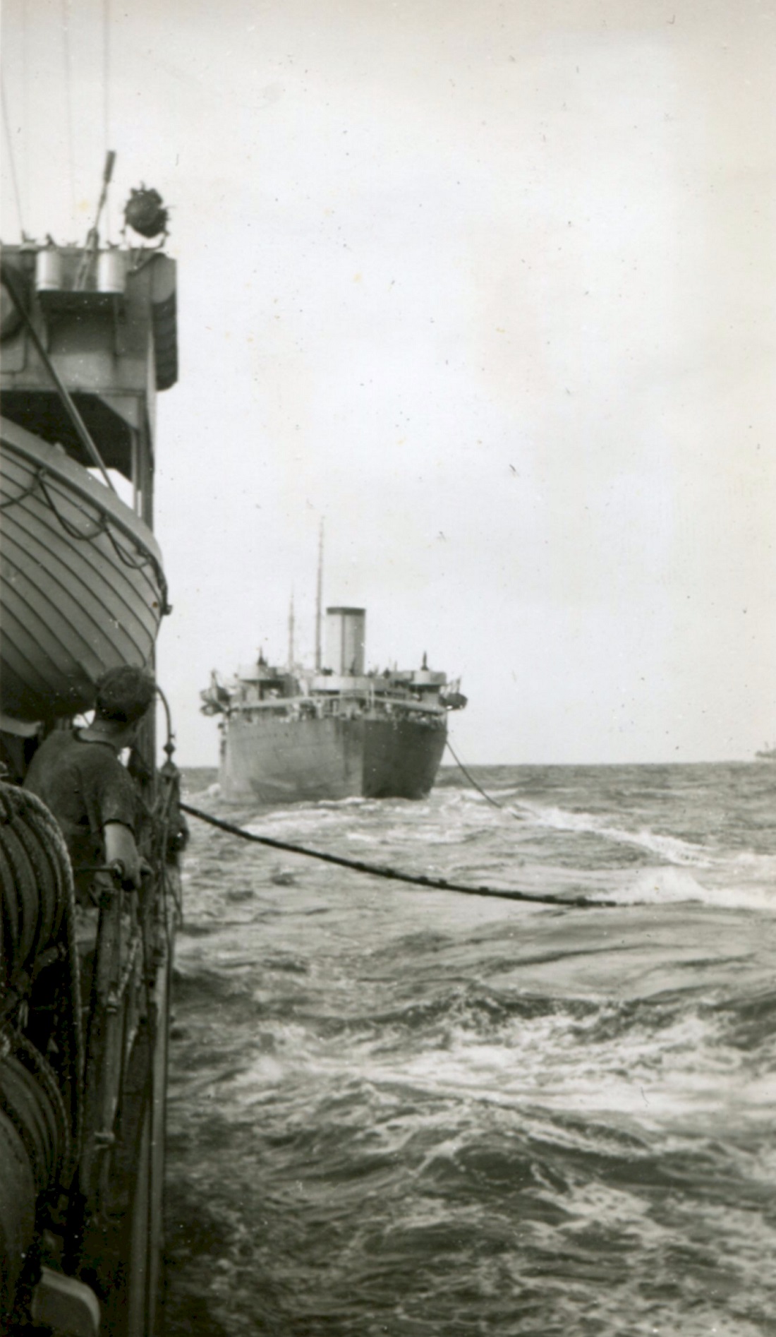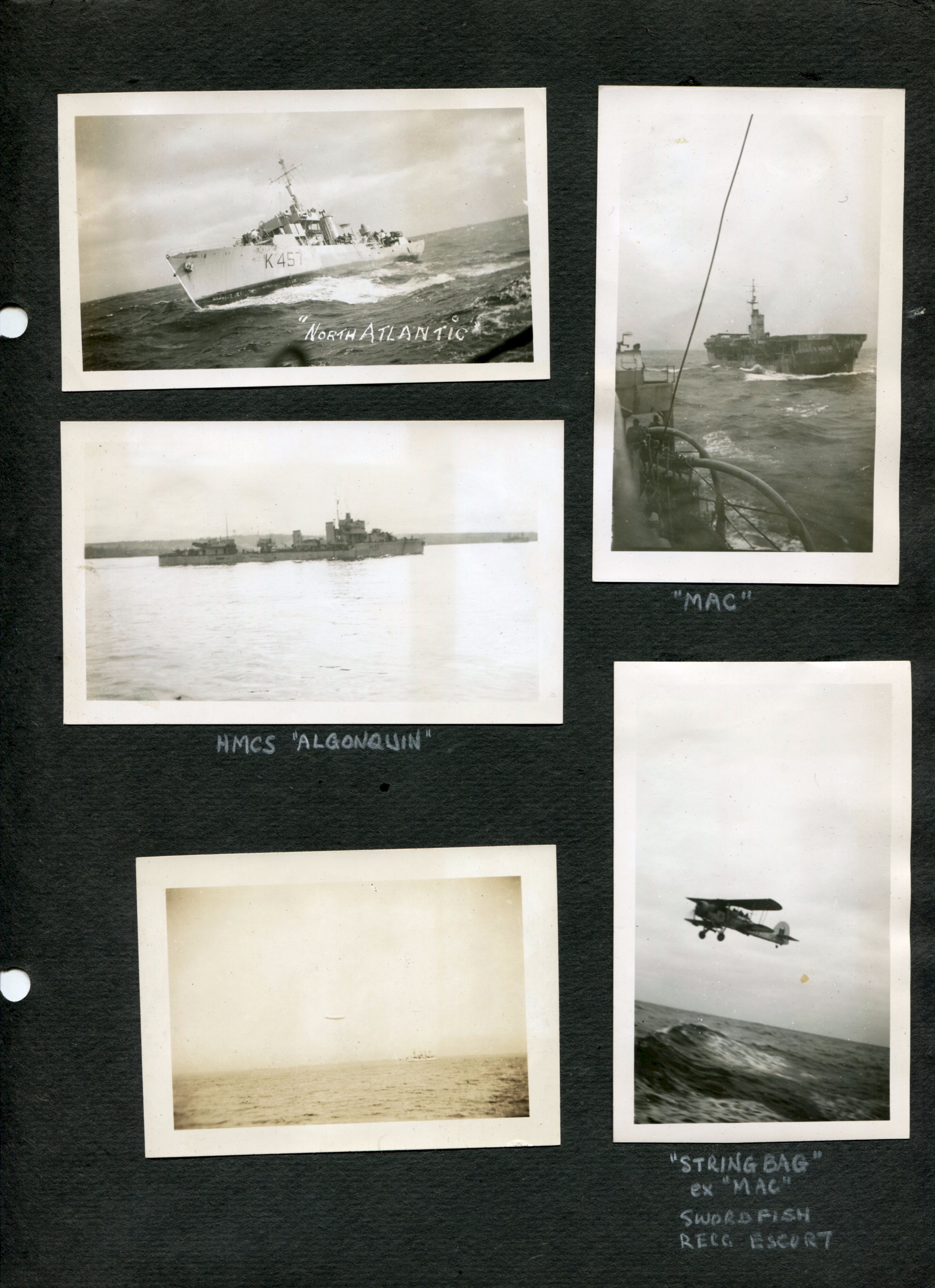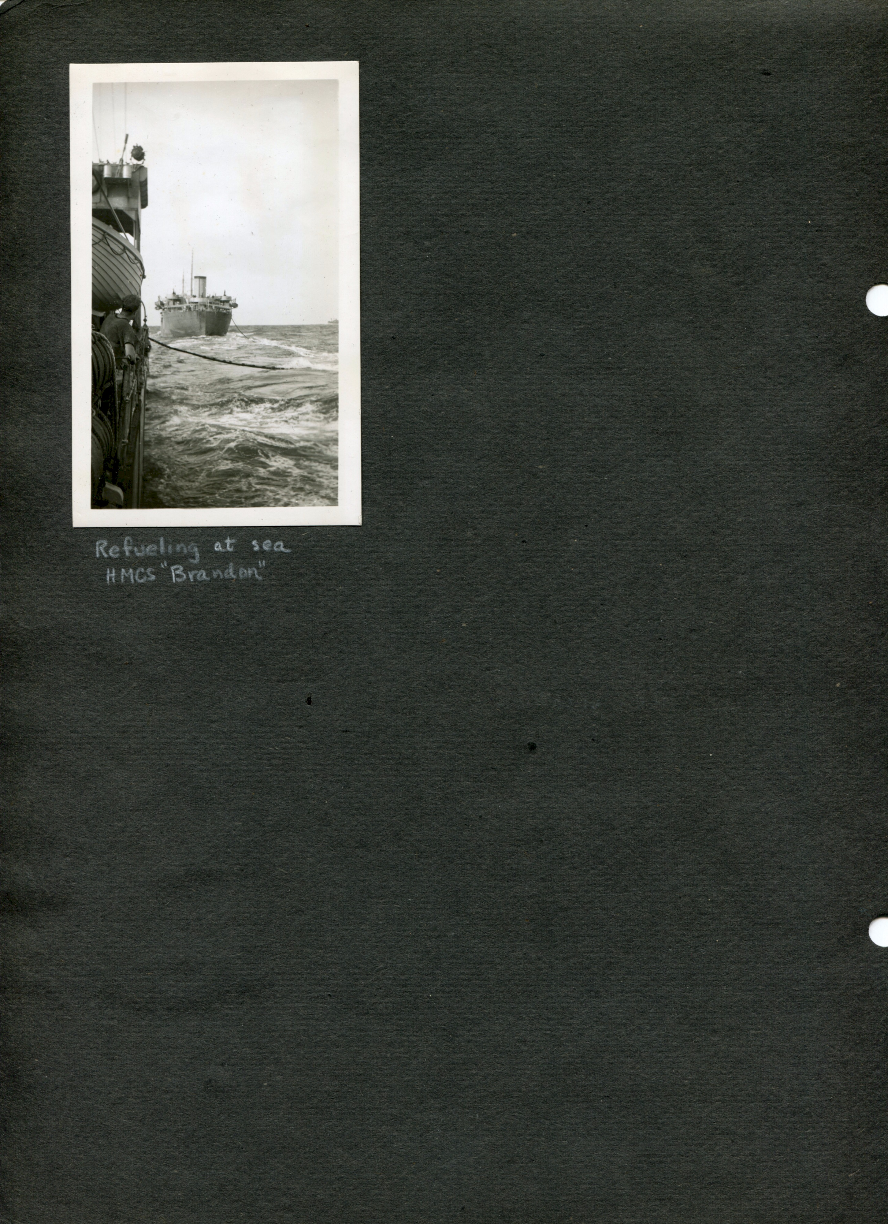 (WM29) HMS BRANDON fueling from an oiler while in convoy (WM30) HMCS STELLARTON K457 (WM31) HMCS OTTAWA H31 (WM32) Merchant Aircraft Carrier (MAC). Photo taken from HMCS BRANDON (WM33) A "Stringbag" (Fairey Swordfish Bi-plane) from a MAC