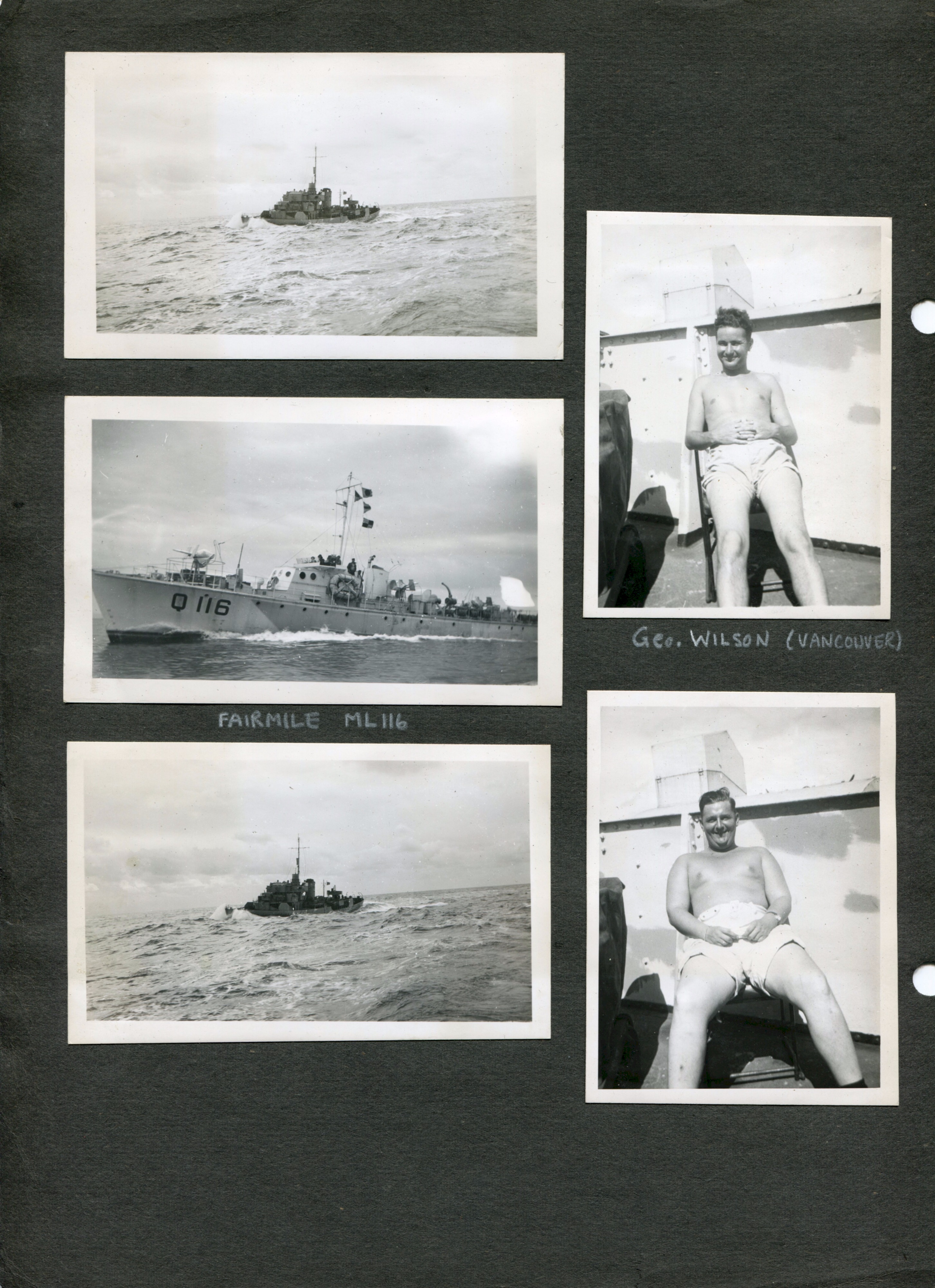 (WM39) Unidentified corvette (WM40) George Wilson, of Vancouver, BC on unknown ship (WM41) Unidentified sailor on unknown ship (WM43) Porpoises chasing the ship