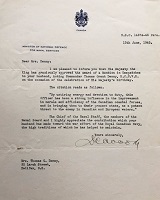 (TD01) Cdr Thomas Denney, RCNVR - 1945 (TD02-TD03) Notification of the award of Mentioned in Despatches with accompanying letter