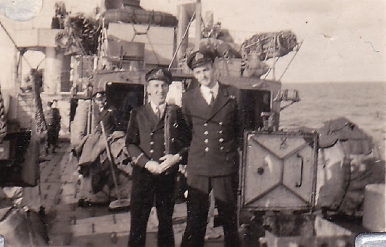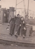 (JB01) Sailors on a tug - St. John's, Newfoundland - James Bennett on right (JB02) Mate James Bennett and the Gunnery Officer on HMCS ARNPRIOR (JB03) James' flimsy for his time as NavO on HMCS ARNPRIOR