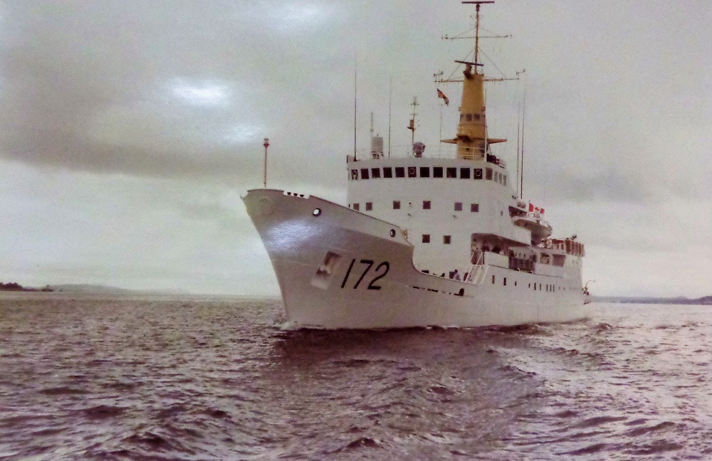 (JB16) QUEST at sea (JB17) CFAV QUEST in the Firth of Clyde approaching Greenoch, Scotland - 1977