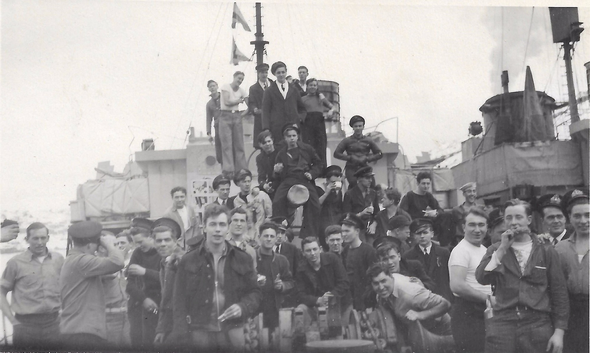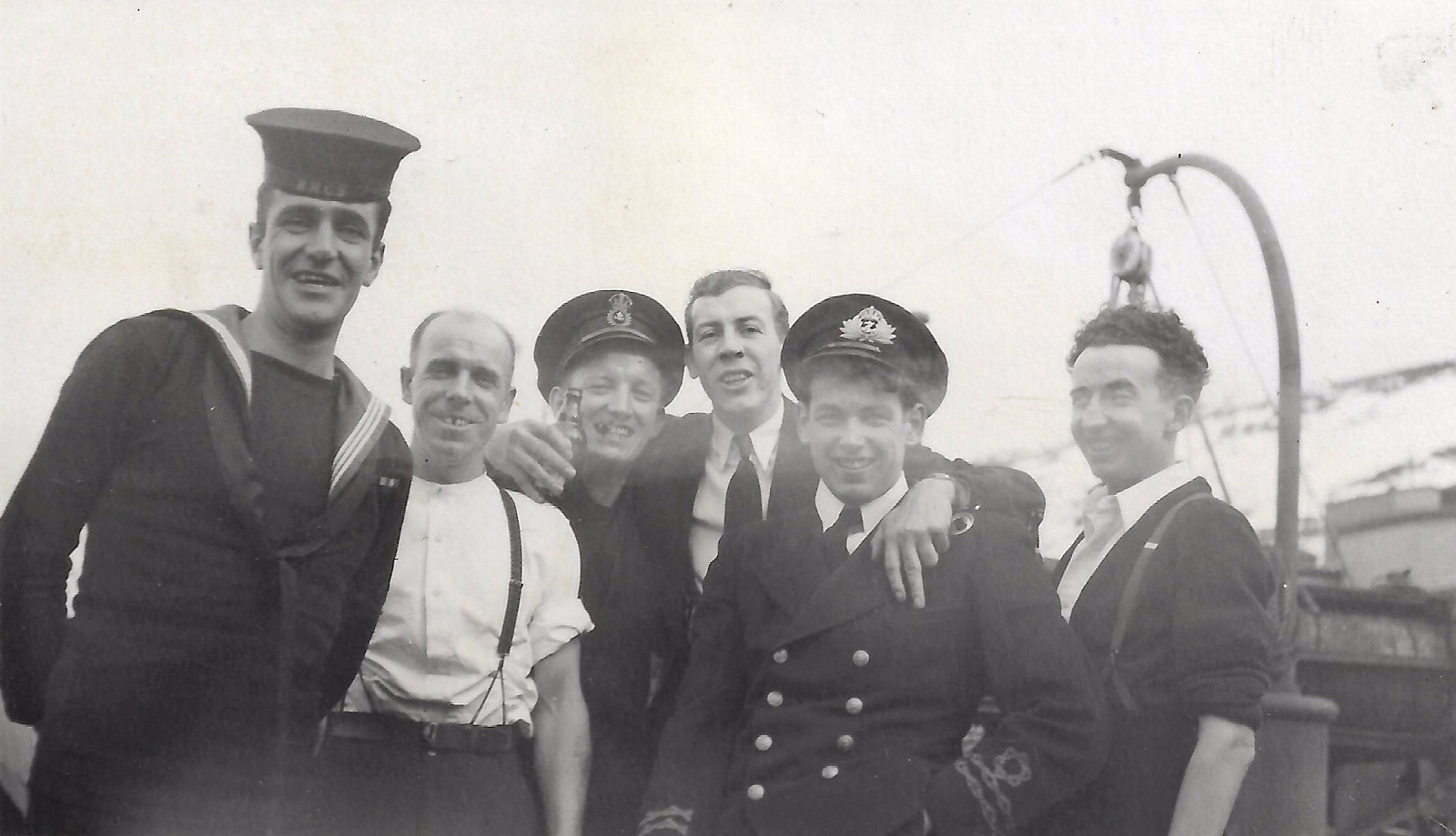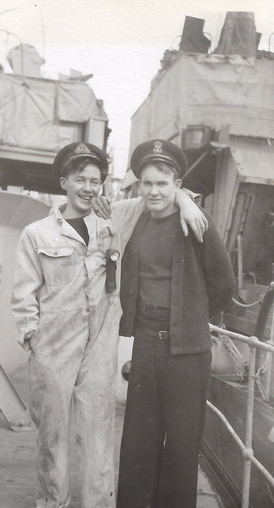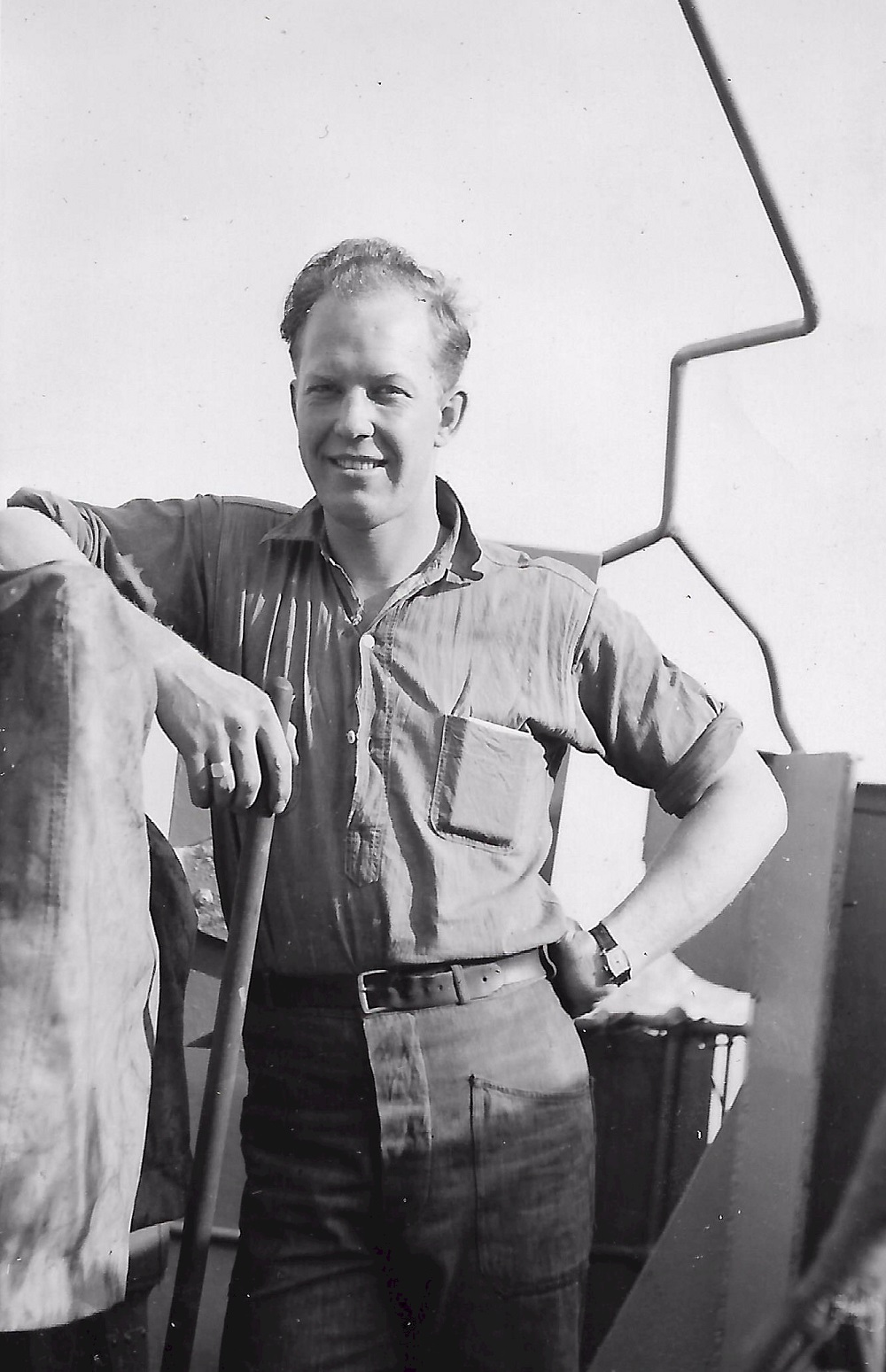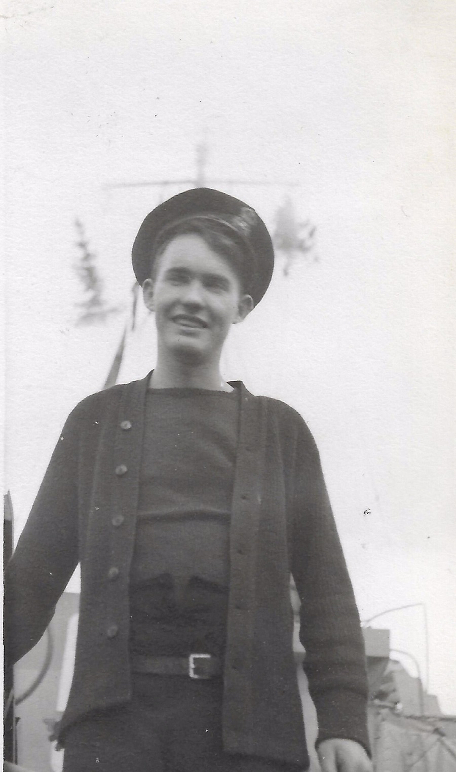 (LK07) LS Lewis Kennett wearing a Lt's uniform on HMCS WETASKIWIN - Christmas Dec 1944  (LK11) Note the two Christmas tree raised up on the yard arms.
