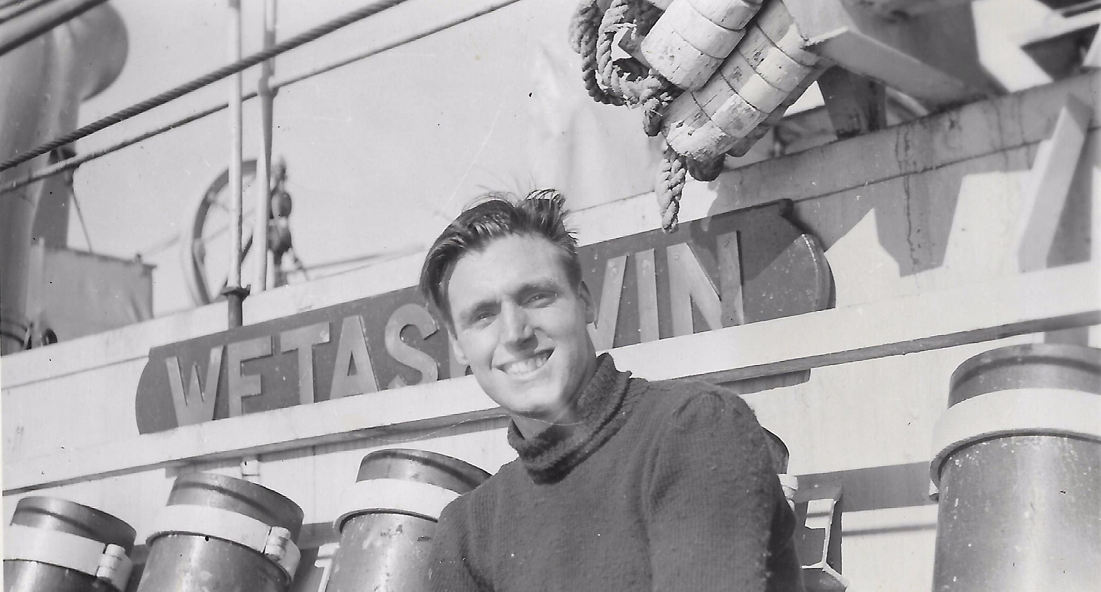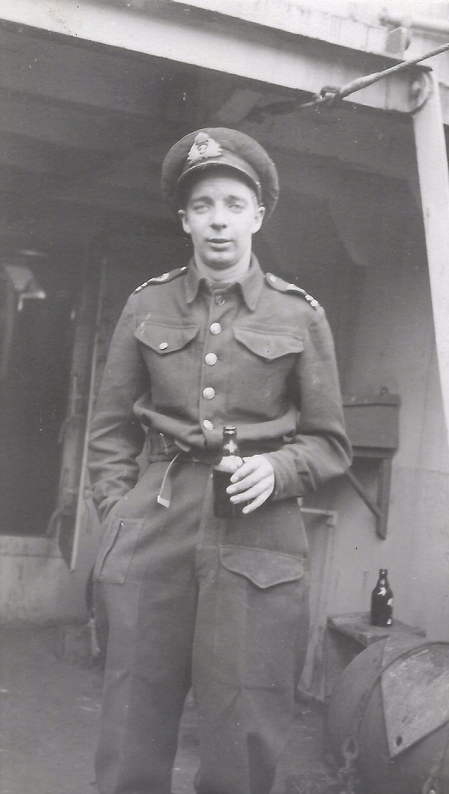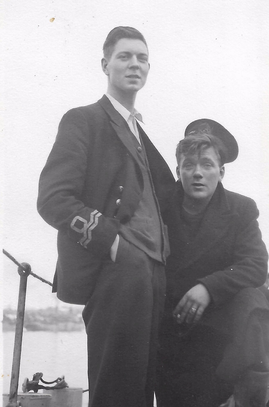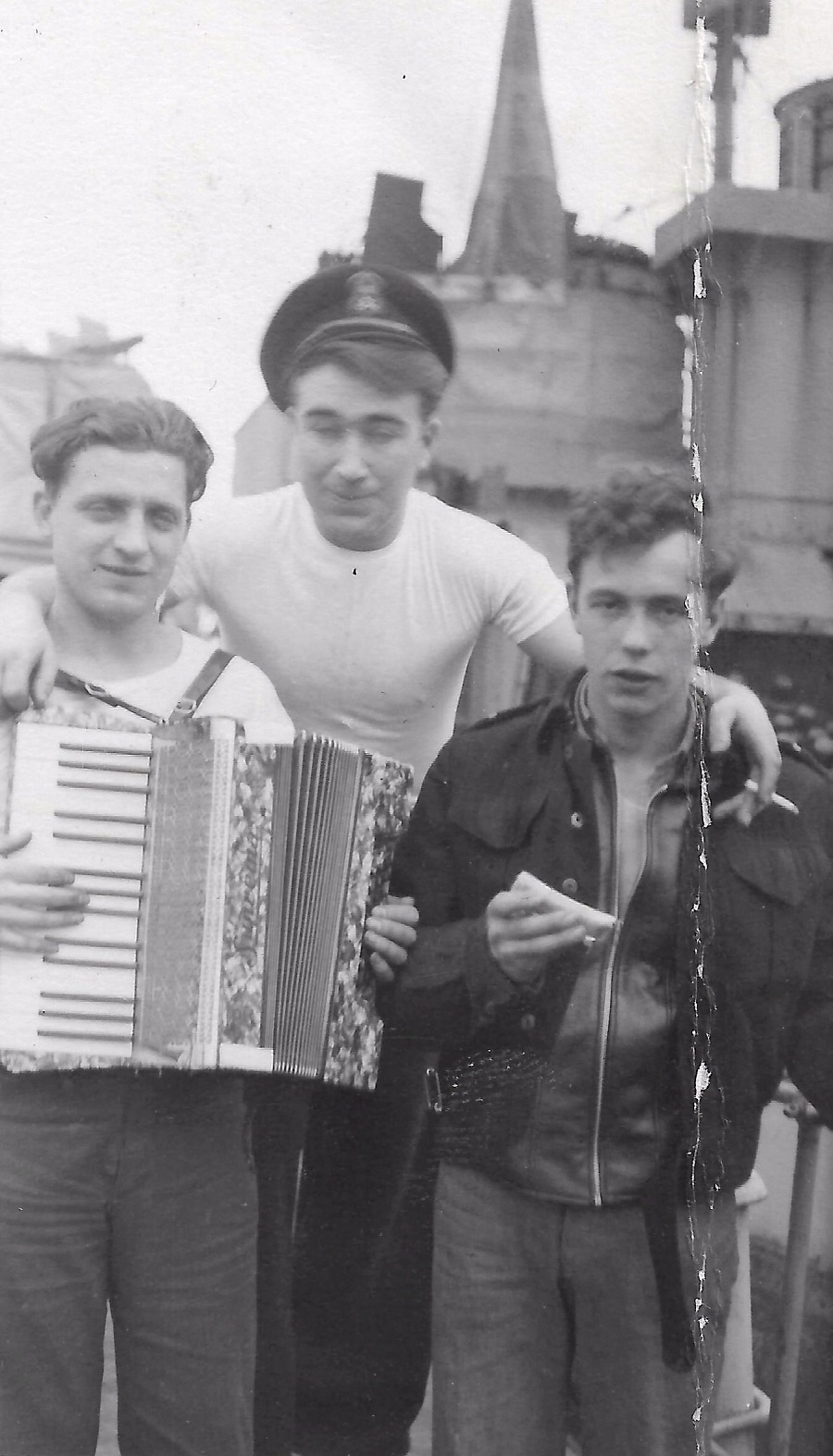 (LK07) LS Lewis Kennett wearing a Lt's uniform on HMCS WETASKIWIN - Christmas Dec 1944  (LK11) Note the two Christmas tree raised up on the yard arms.