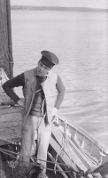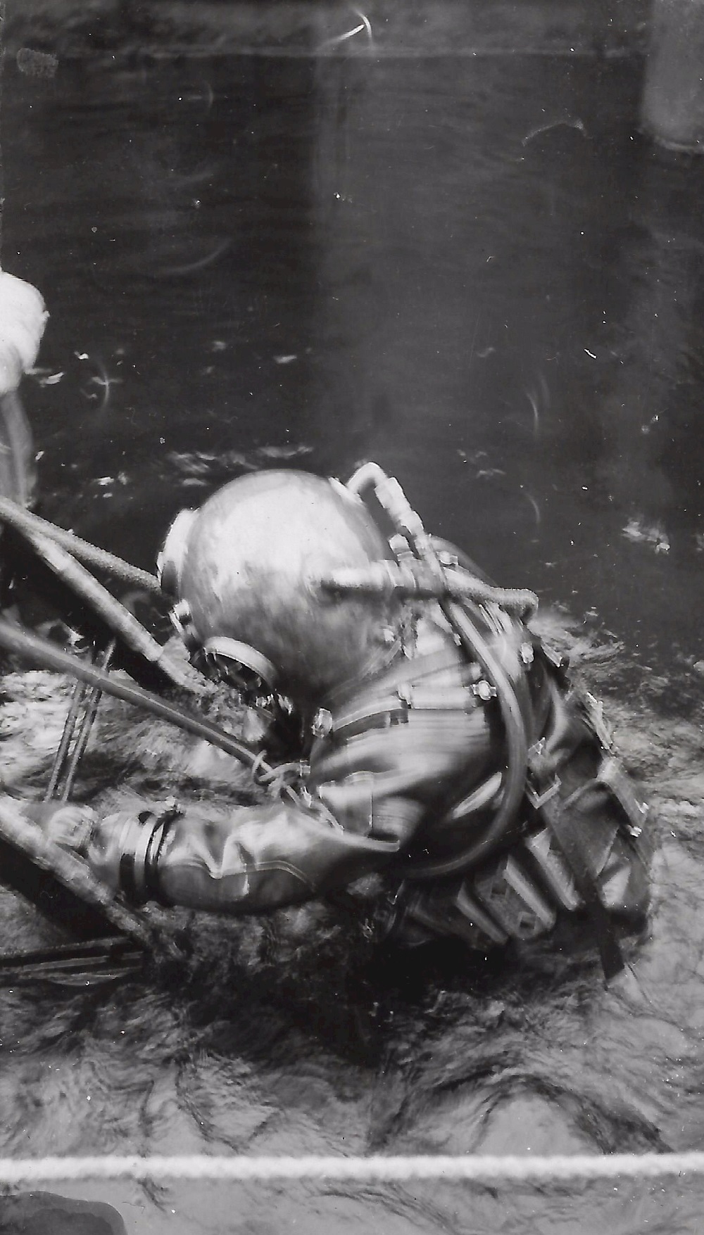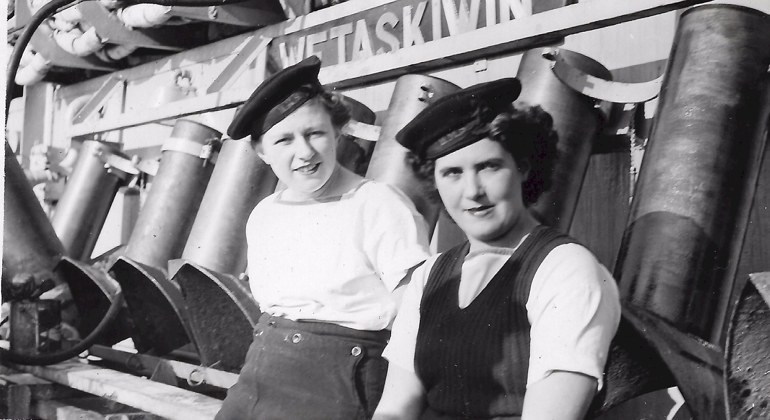 (LK01) Sailors on HMCS WETASKIWIN - Lewis Kennett crouched, front centre  (LK02) Lewis Kenneth by the depth charge thrower on HMCS WETASKIWIN  (LK03) Two unidentified Wrens onboard HMCS WETASKIWIN  (LK04)  Unidentified sailor on HMCS WETASKIWIN  (LK05) Diver exiting the water - believed to have been taken from HMCS WETASKIWIN
