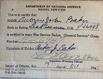 A Chance Meeting: It was the early 1970s and my father and one of my brothers were driving along a narrow dirt road outside Halifax. As they slowed to pass an approaching car the driver suddenly called out, "Aubrey Baker, I thought you were dead." My father recognized the man as one of his shipmates during the war. They had served together for a short time and then gone their separate ways. The man told my father that later in the war he learned that a ship he thought my father was on had been torpedoed and sunk with the loss of everyone on board. Chance meetings between former shipmates may not often have been as startling as this one, but given the thousands who had been in uniform they cannot have been unusual. - Submitted by Bryan Baker