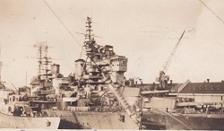 (AB13) HMCS SASKATCHEWAN, an RN cruiser and a KGV Class Battleship - London, 1945 (AB14) A 13-cm piece of shrapnel from a German V-2 rocket