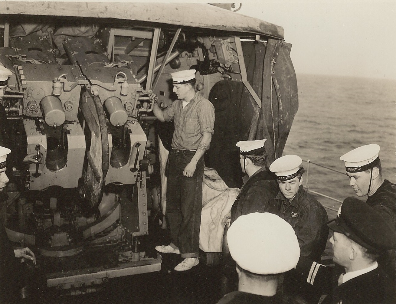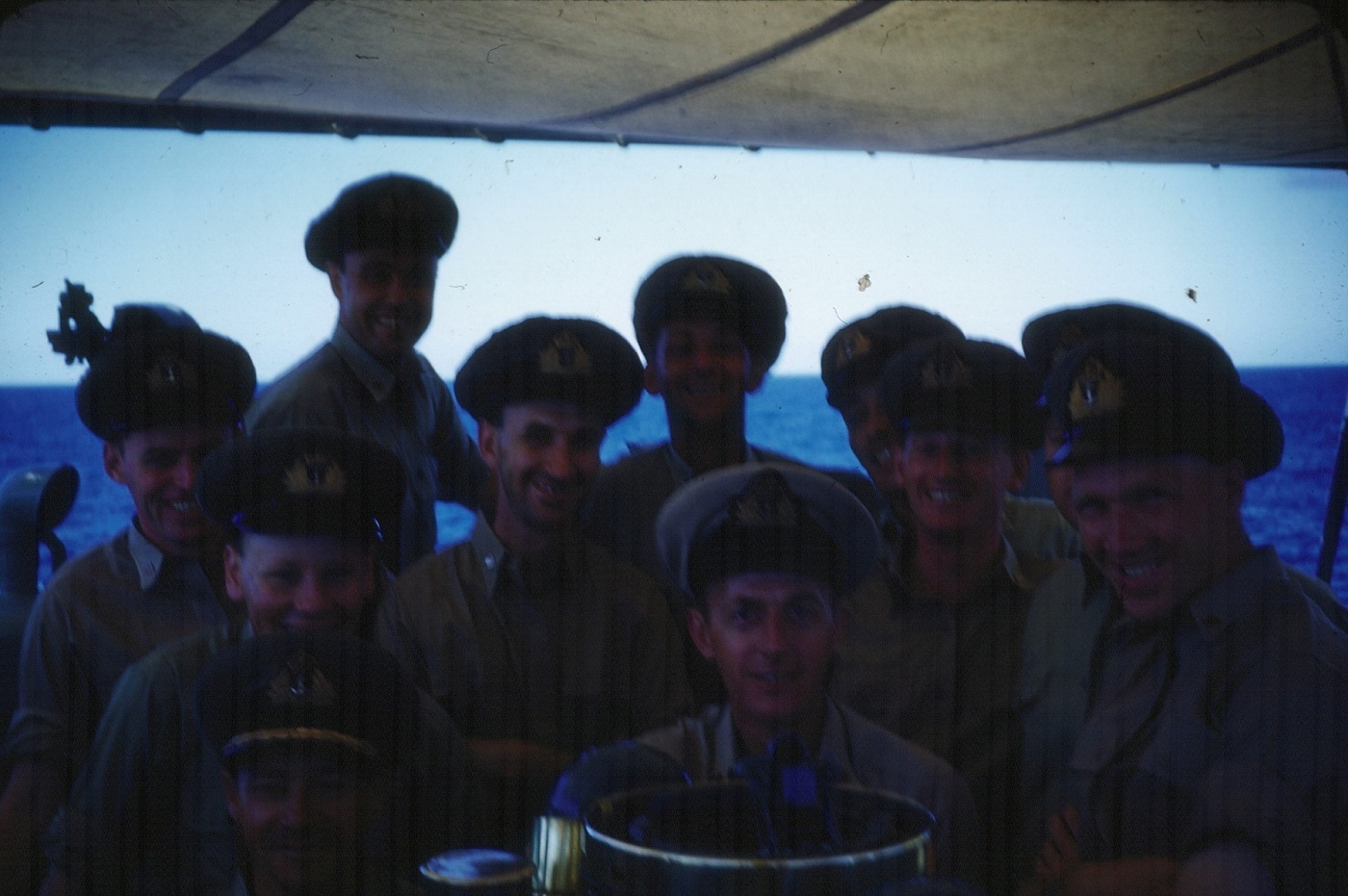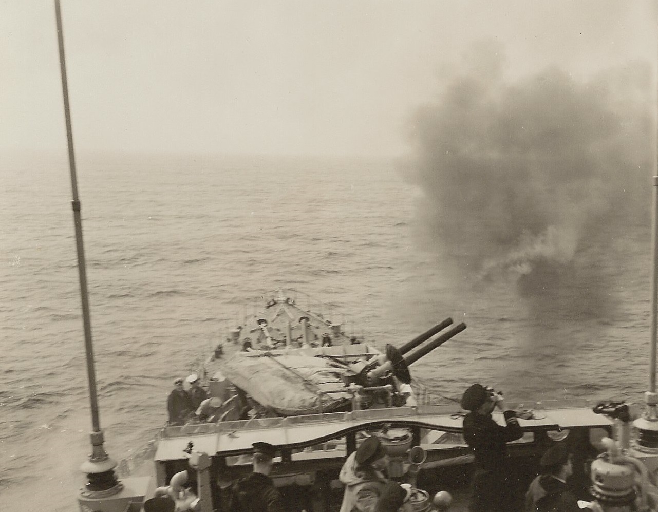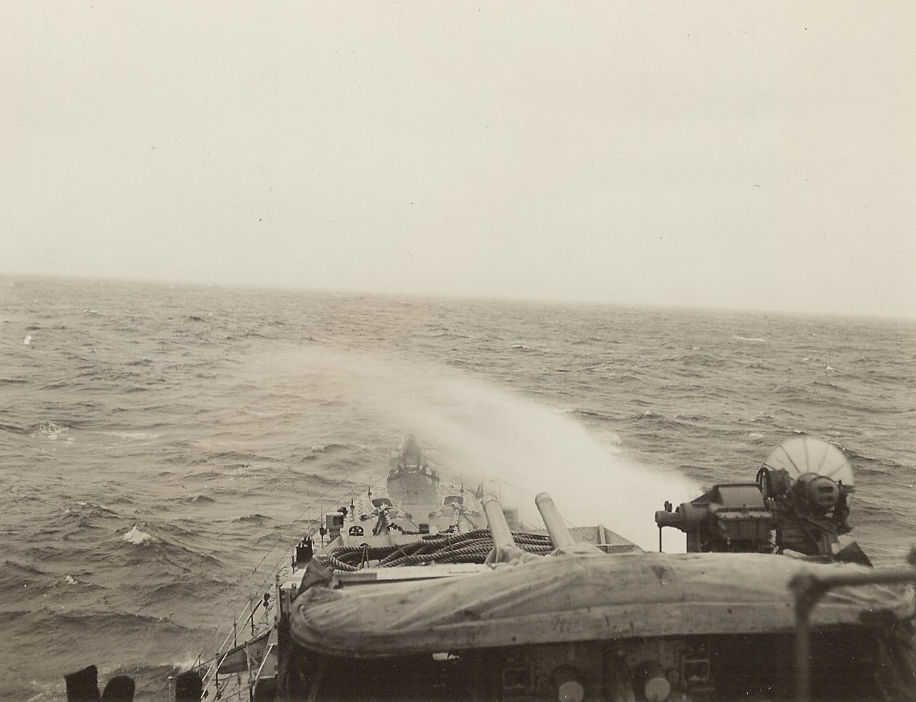 Note: These photos were sent to LCdr John Quinn's widow by then Cdr William (Bill) Landymore after LCdr Quinn died on 02 Oct 1952. It is possible that some of the gun crew in the photos are those that were either killed or injured that day off the Korean penninsula.