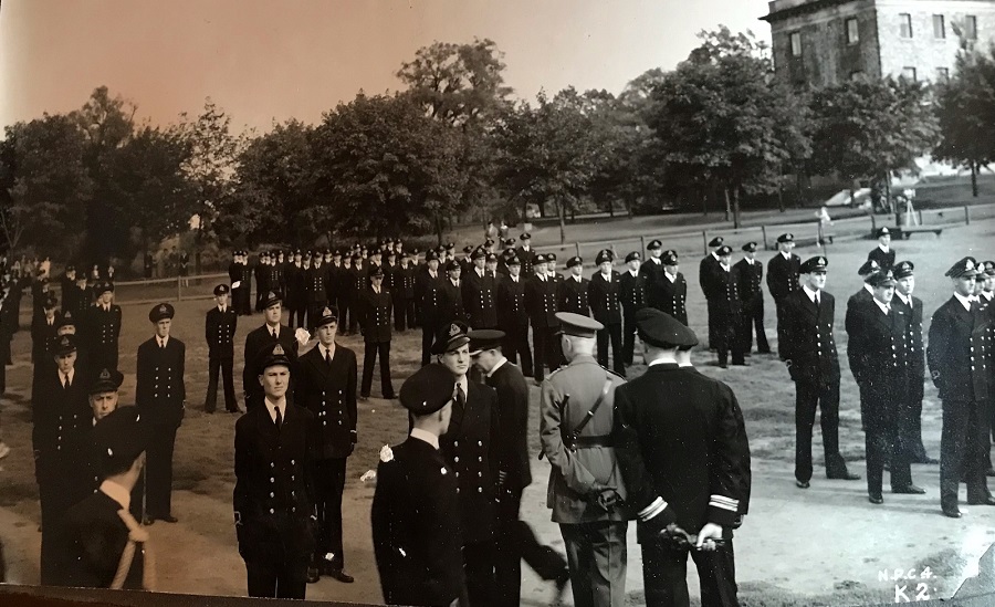 Officers in training on parade being inspected either at HMCS KINGS or HMCS ROYAL ROADS
