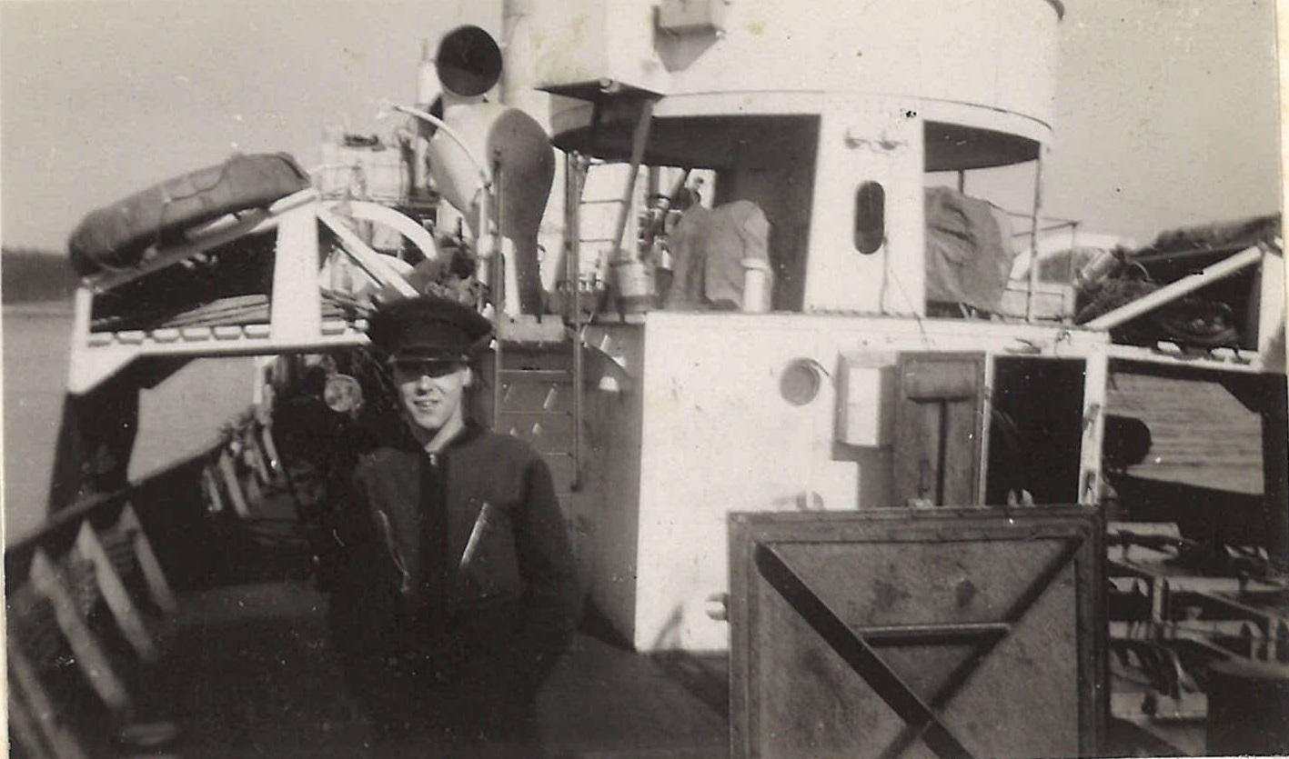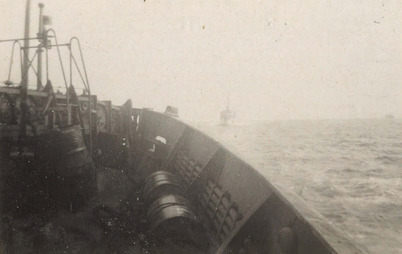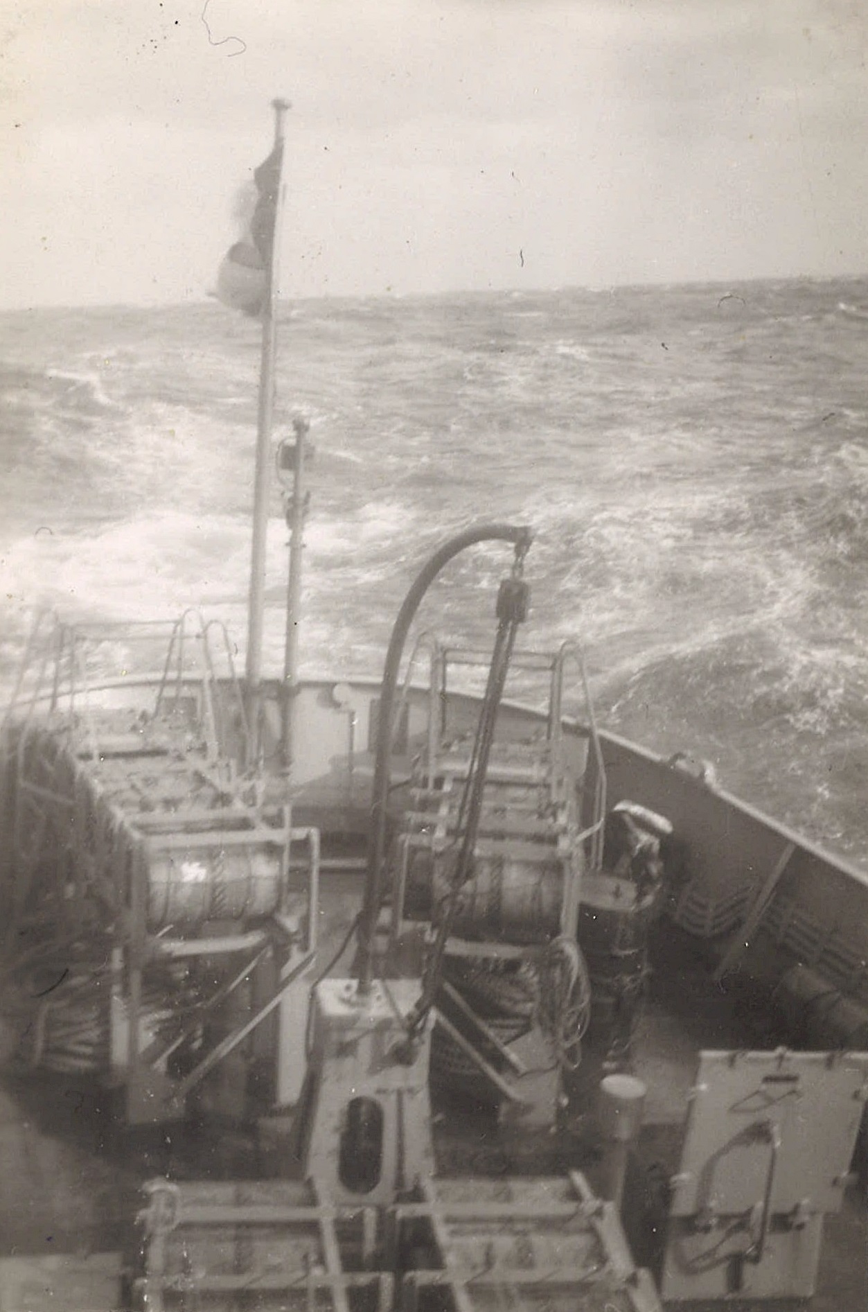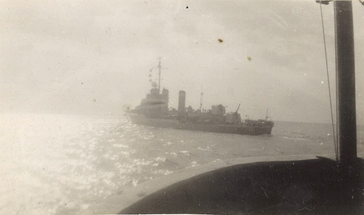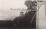 (WB46) Depth charge rails and White Ensign on HMCS BRANTFORD K218 (WB47) Blimp flying past HMCS BRANTFORD K218 (WB48) Doug Brown and William Brown on HMCS BRANTFORD K218 (WB49) William Brown on the boat deck of HMCS BRANTFORD K218 (WB50) Unknown corvette