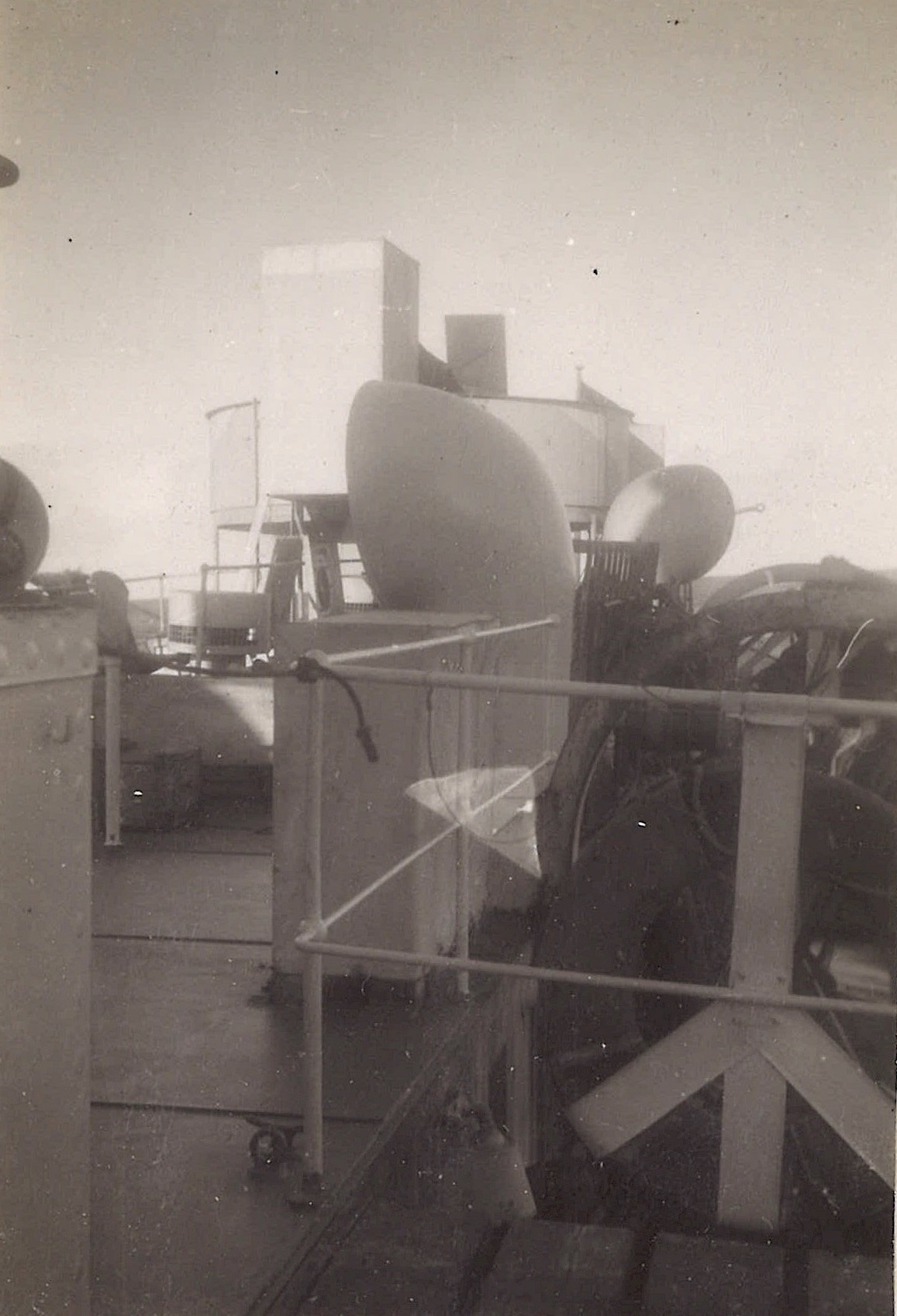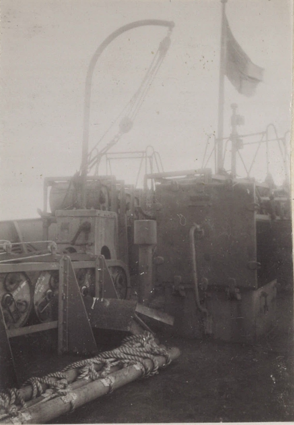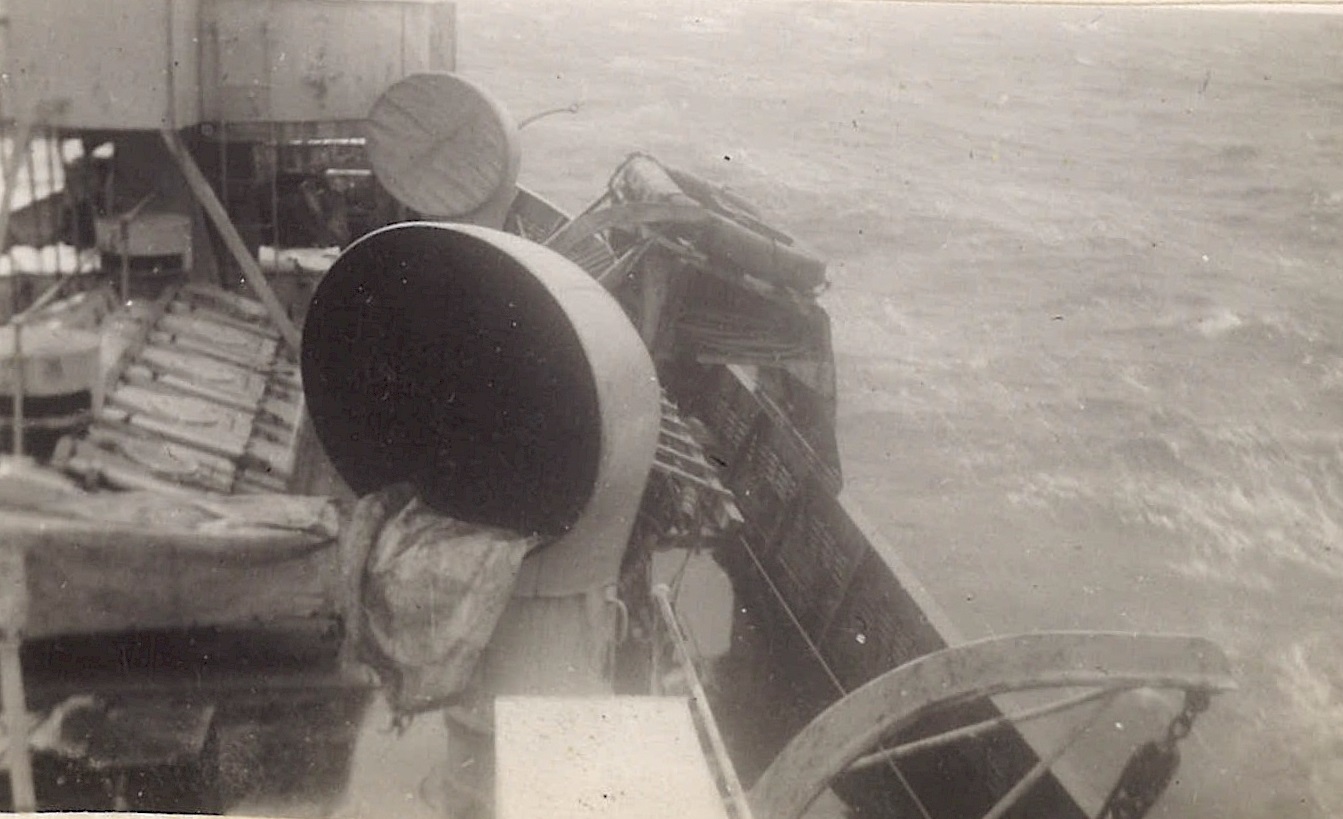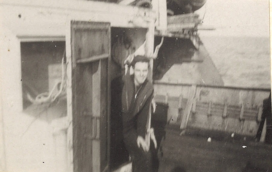 (WB46) Depth charge rails and White Ensign on HMCS BRANTFORD K218 (WB47) Blimp flying past HMCS BRANTFORD K218 (WB48) Doug Brown and William Brown on HMCS BRANTFORD K218 (WB49) William Brown on the boat deck of HMCS BRANTFORD K218 (WB50) Unknown corvette