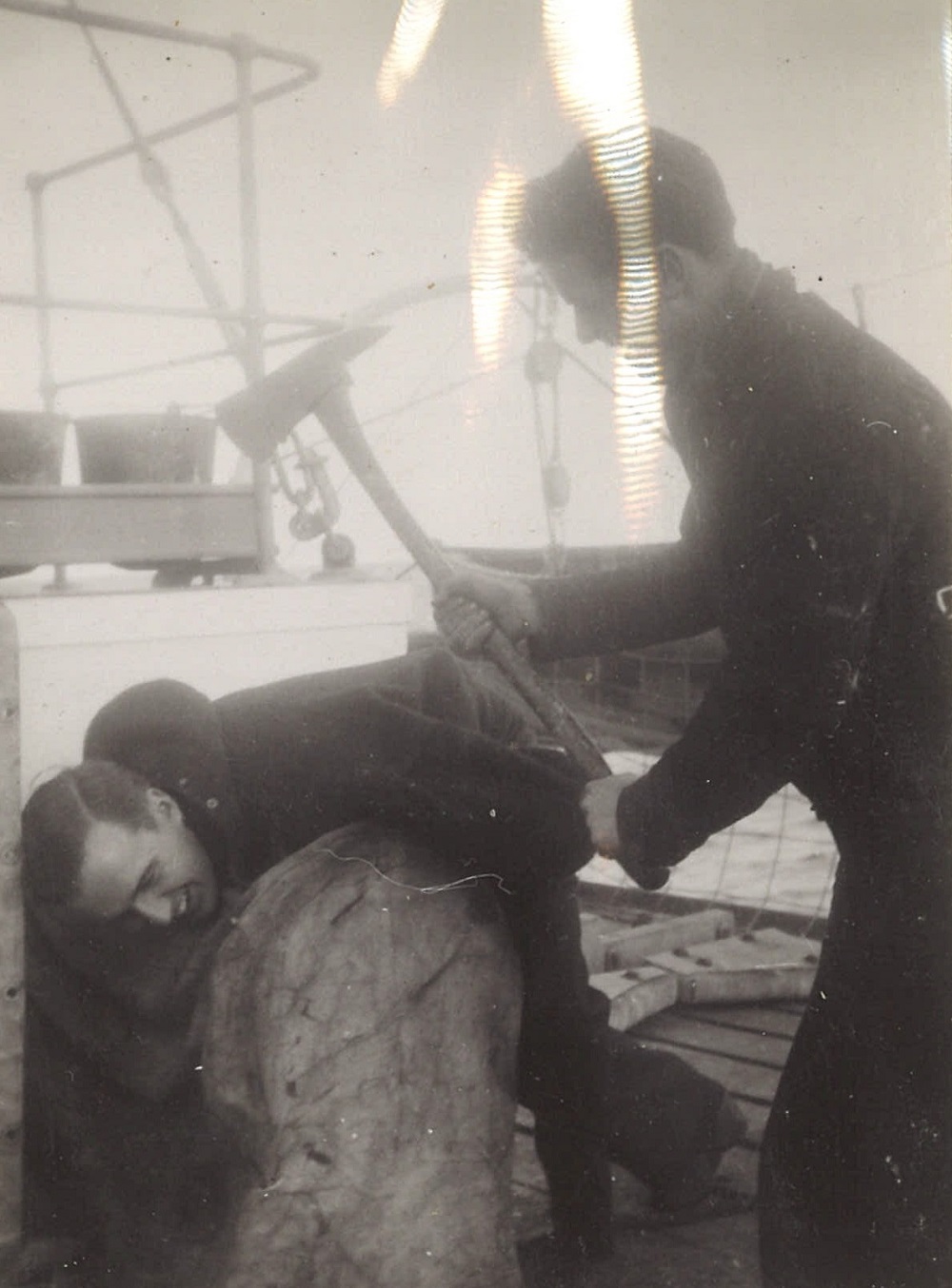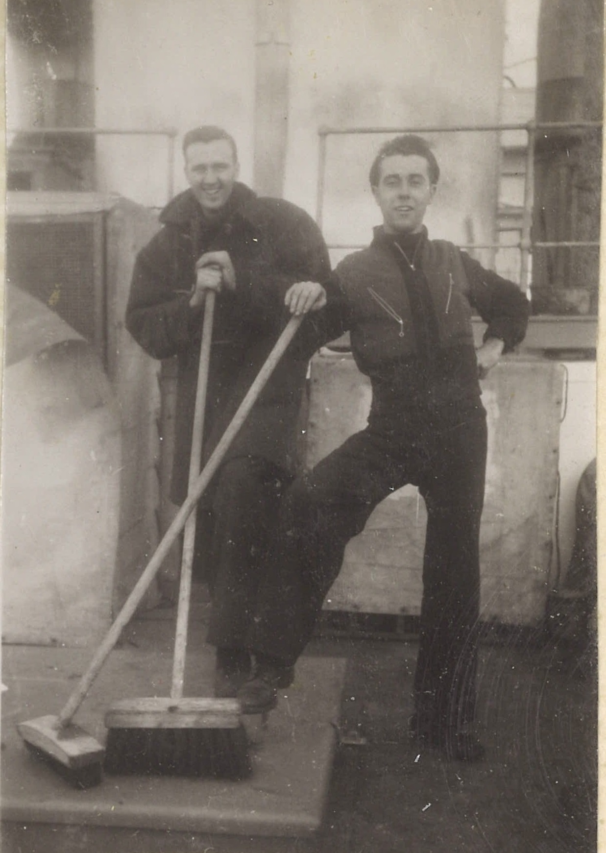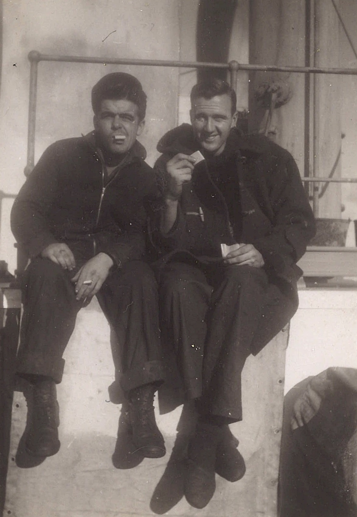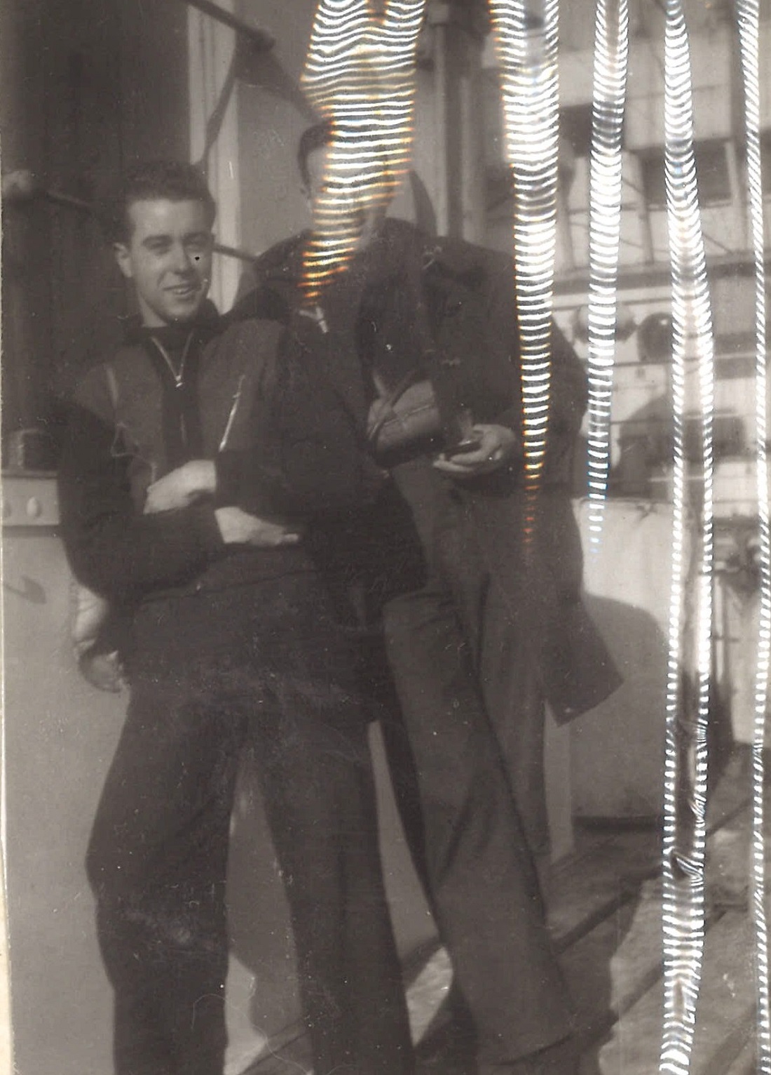 (WB21) Depth charge rails on HMCS BRANTFORD K218 (WB22) William Brown and Doug Brown on HMCS BRANTFORD K218 (WB23-WB24) Bryant and Doug Brown on HMCS BRANTFORD K218 (WB25) Unidentified sailor on HMCS BRANTFORD K218 impersonating Adolph Hitler