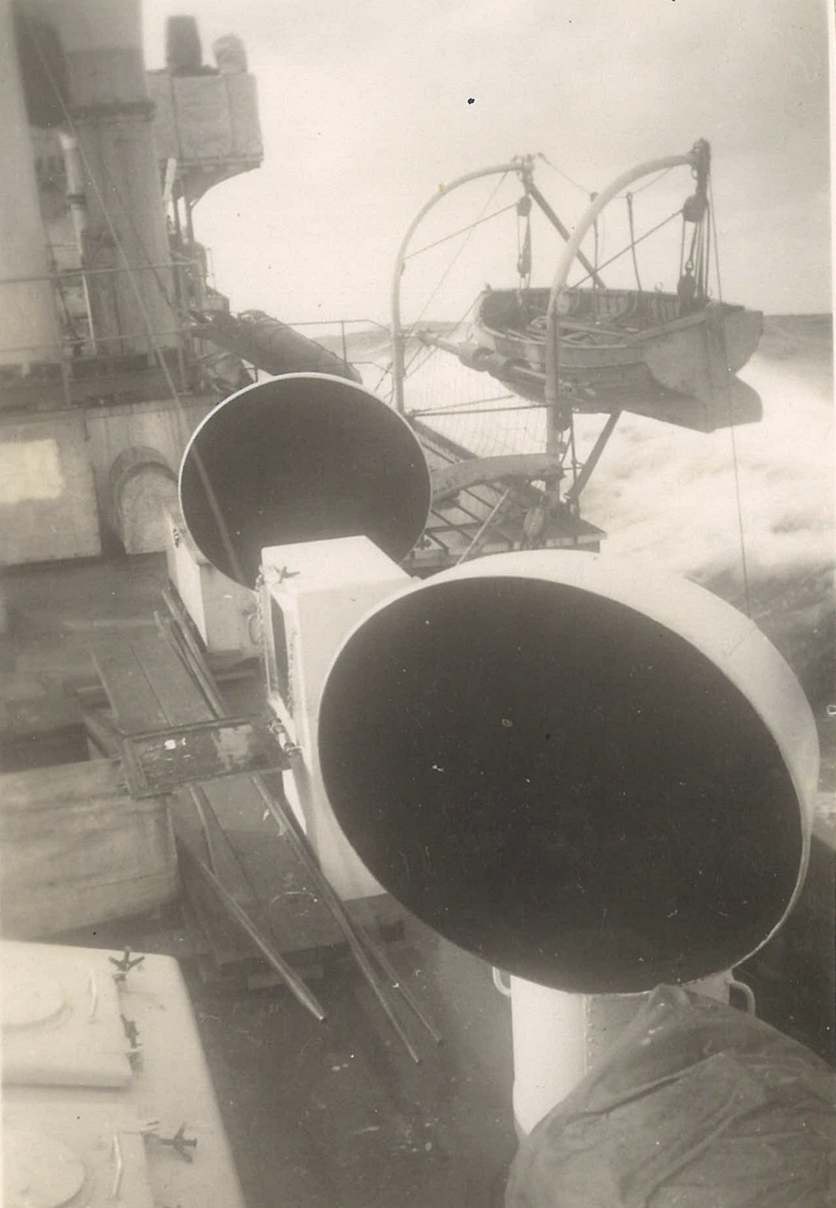 (WB36) William Brown sitting in an engine room air intake on HMCS BRANTFORD K218 (WB37) Unidentified sailors on watch by the after gun platform on HMCS BRANTFORD K218 (WB38) Sailors jacking around on the boat deck of HMCS BRANTFORD K218 (WB39-WB40) Ship's boat on HMCS BRANTFORD K218 turned out and ready for use