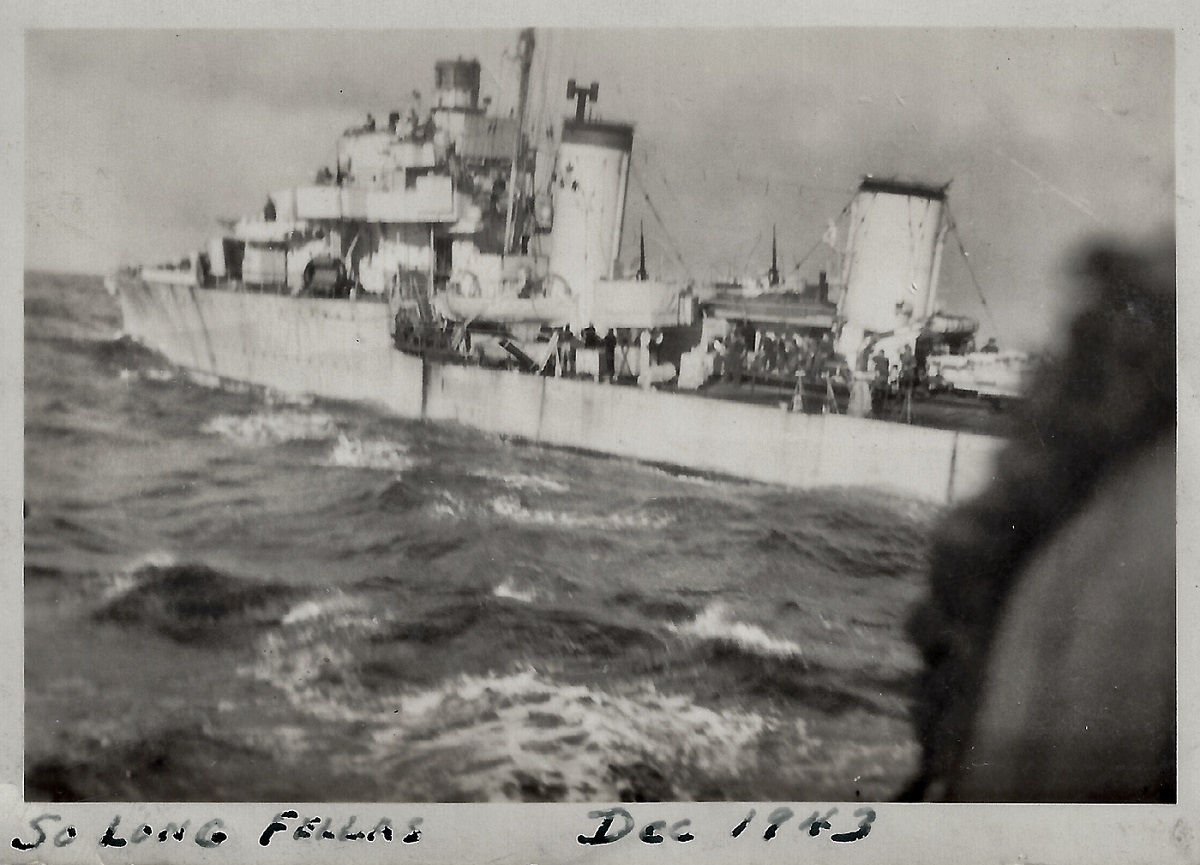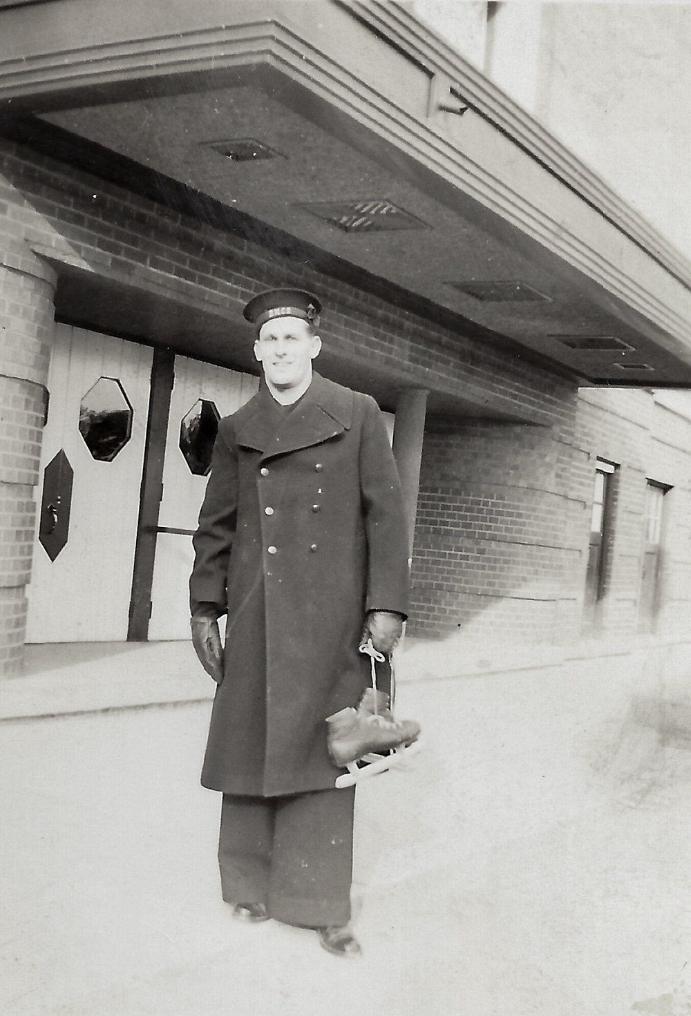 (GP01) Glen Pugh outside the arena at St Hyacinthe just before a hockey game (GP02) Seaman Glen Pugh - location unknown (GP03) Glen Pugh 1st on right. "Taken in Lachine Canal Montreal. Just finished going through this minesweeper." written on back of photo (GP04) Unknown River Class destroyer. "So Long Fellas - Dec 1943" written on photo