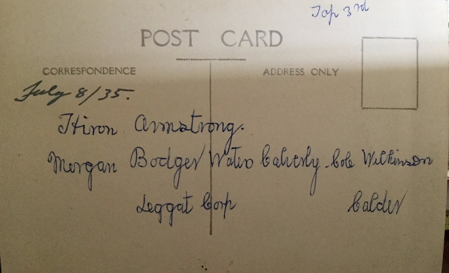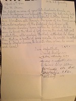 (BH11) Envelope from letter Bernard sent home to his wife from Panama while serving in HMCS SKEENA (BH12) Letter penned by CPO David Sadler and signed by shipmates expressing their condolences to Bernard's widow. (BH13) Naval Message reporting the death of A/Gunner (T) Hiron (BH14) Newspaper article on the death of A/Gnr (T) Hiron and civilian R. Whittington