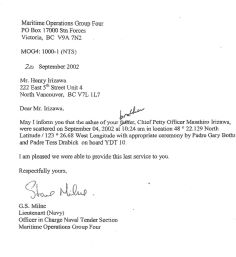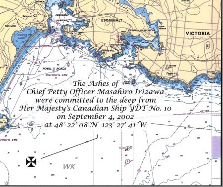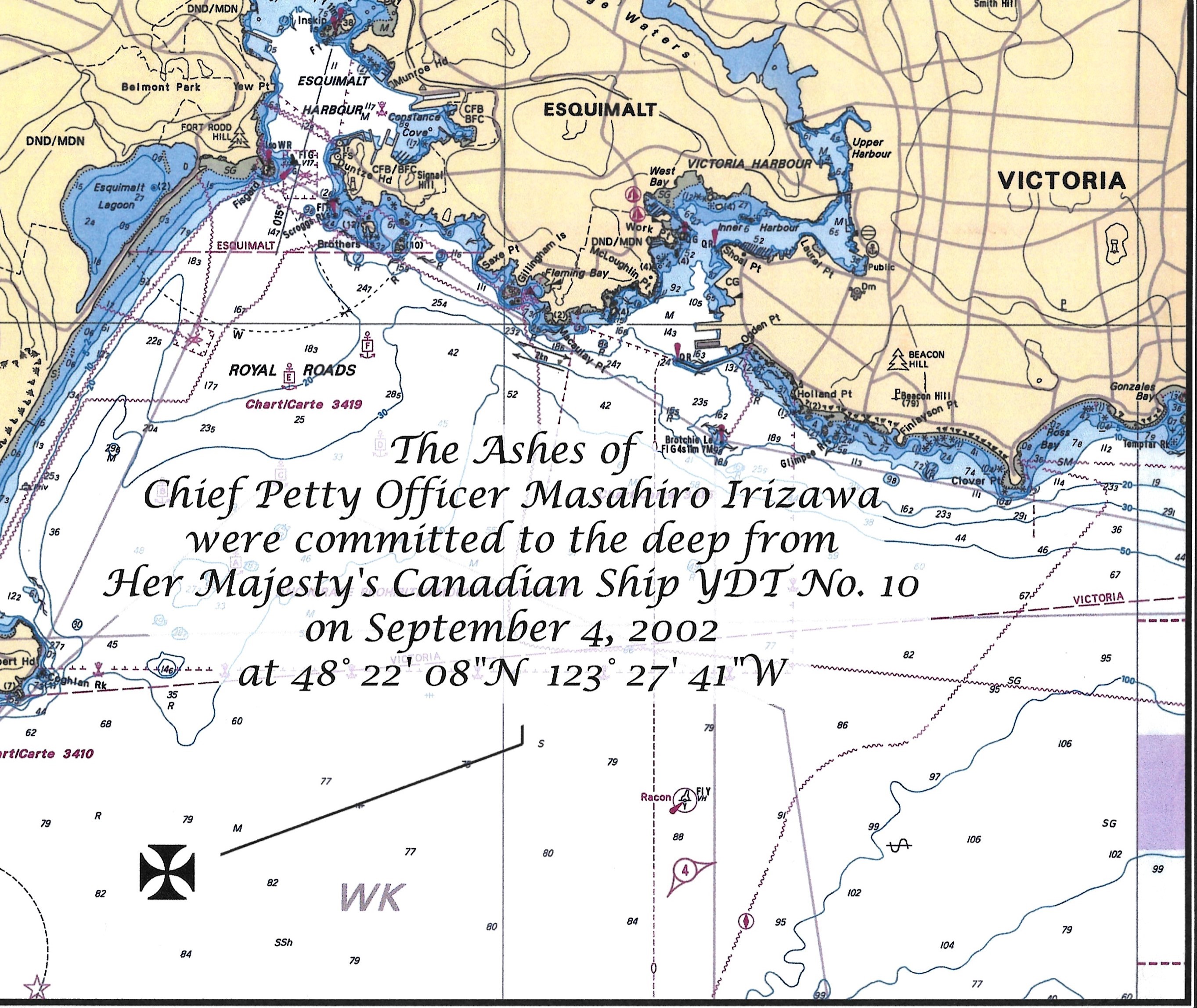 (MI005) Letter of Appreciation from Takao Irizawa for those involved in Masa's service (MI006) Chart showing where Masa's ashes were committed to the sea