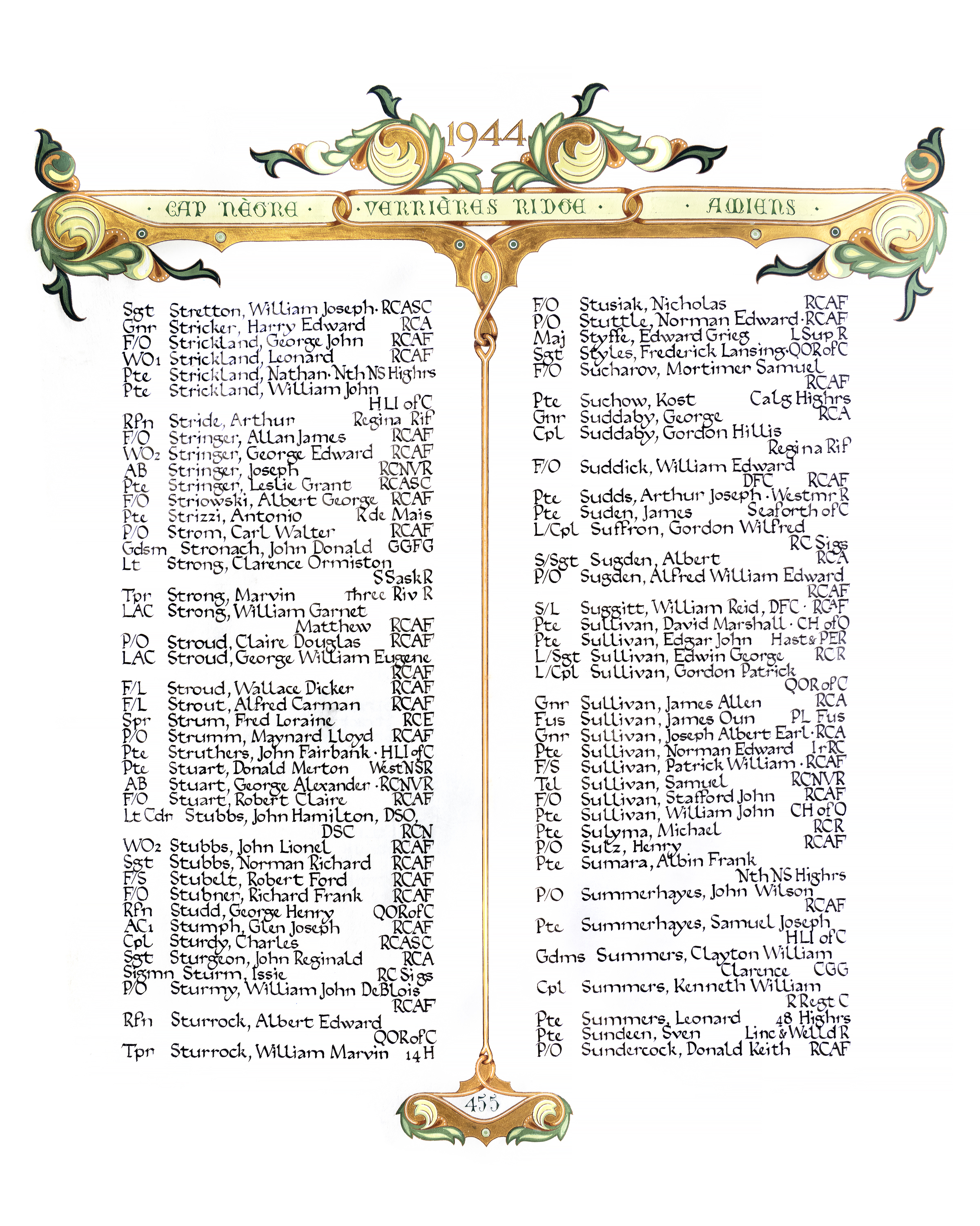 Awarded as per Canada Gazette of 9 September 1944 and London Gazette of 11 July 1944.
