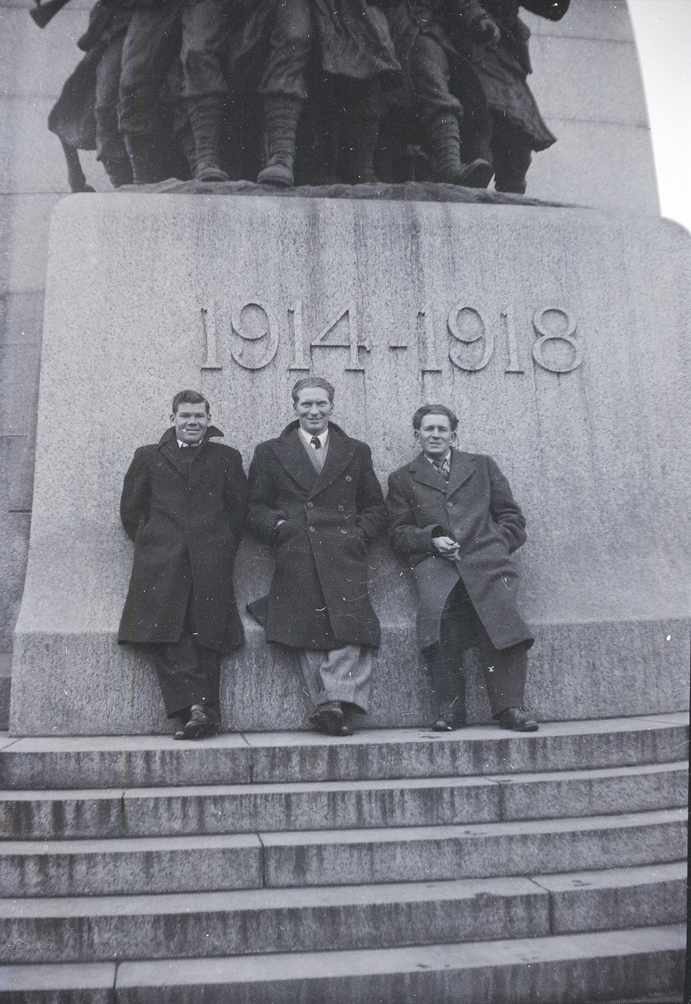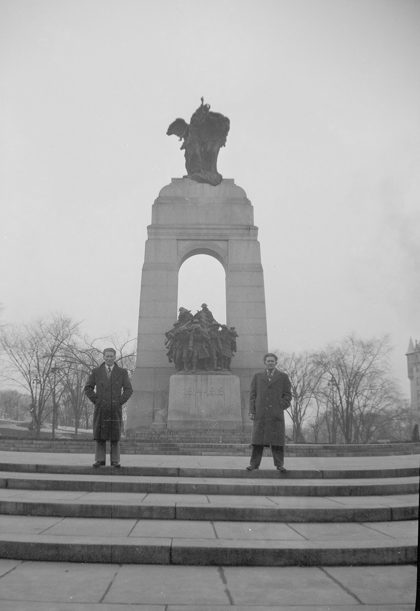 (MB98) Marshall Burns (left) and unidentified friends at the National War Memorial in Ottawa, ON