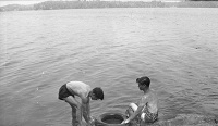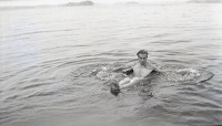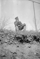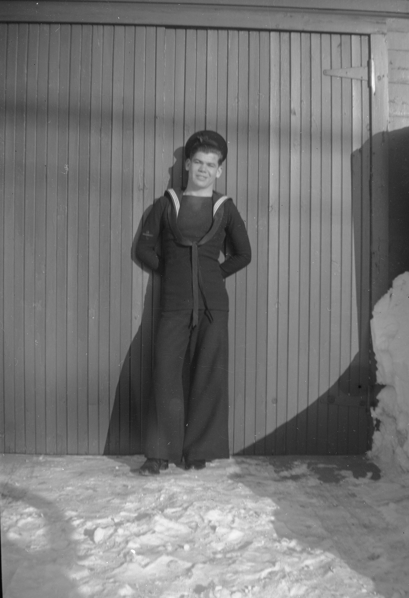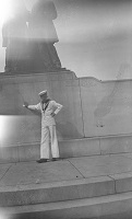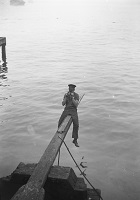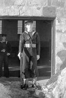 (MB80-MB81) Unknown sailor on guard duty - posing for a few photos (MB82) Unknown person - possibly taken at St. John's, NFLD (MB83) Unknown sailor taking photos (MB84) Doug Angus, HMCS Minas - Aug 1942 - taking photos from plank extending off the jetty