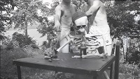 (MB09-MB12) Lou Machuk at various positions on the quarter deck of HMCS MINAS (MB13) Marshall Burns in quarterdeck hatch to minesweeping stores on HMCS MINAS
