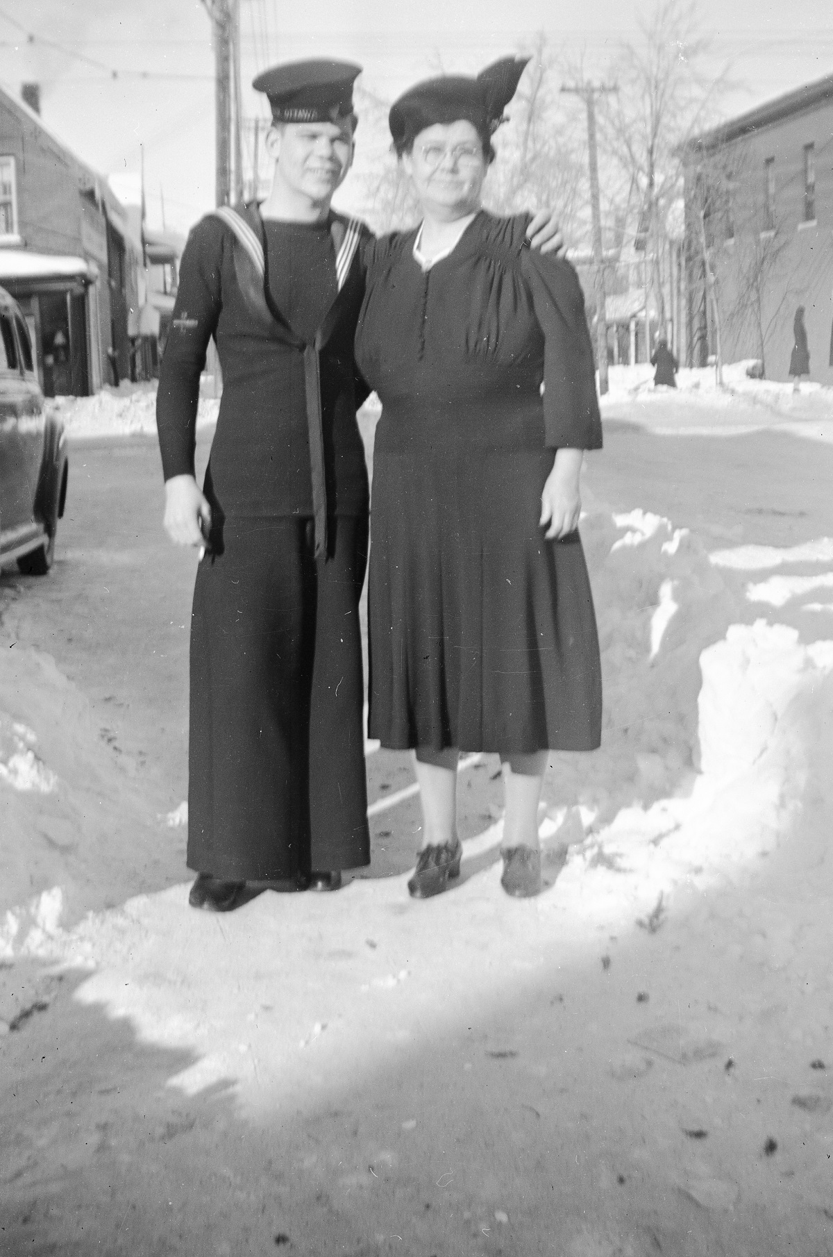 (MB110) Marshall's sister Eileen and her husband Roger Legpage - 1943. Photo taken by Marshall Burns (.MB111) Marshall Burns with Yvette, Lunenburg, NS - Jul 1942 (MB112) Marshall Burns with his sister Ruth (MB113) Marshall's younger brother Thomas (Tommy) Burns (right) with friend - Jun 1942