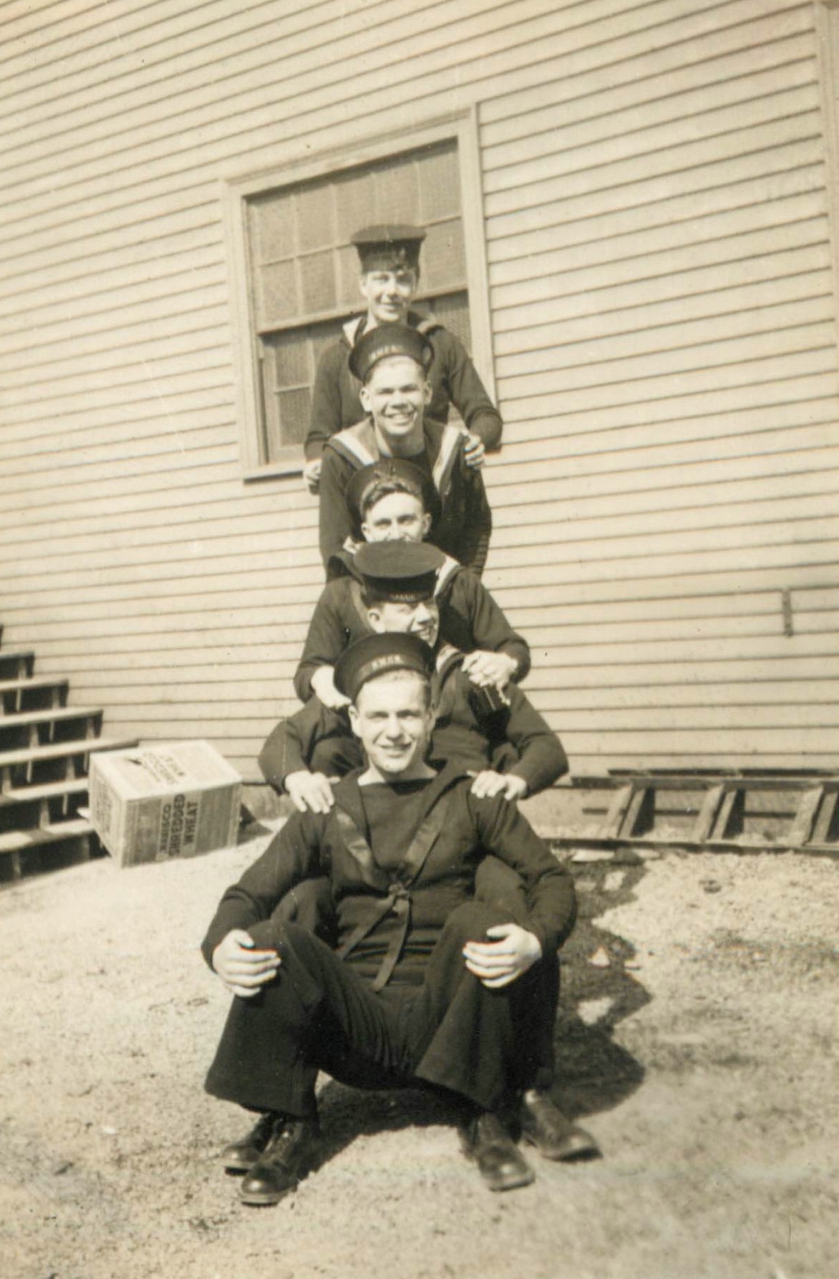 (MB77) Marshall Burns (MB78) Johnny Henbrey, RCN Barracks - May 1942 (MB79) Chris Fleming and Johnny Henbrey, RCN Barracks - May 1942 (...) Unknown sailor hoisting signal flag (...) Sailors having fun - Marshall Burns 2nd from top