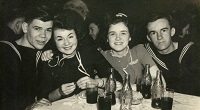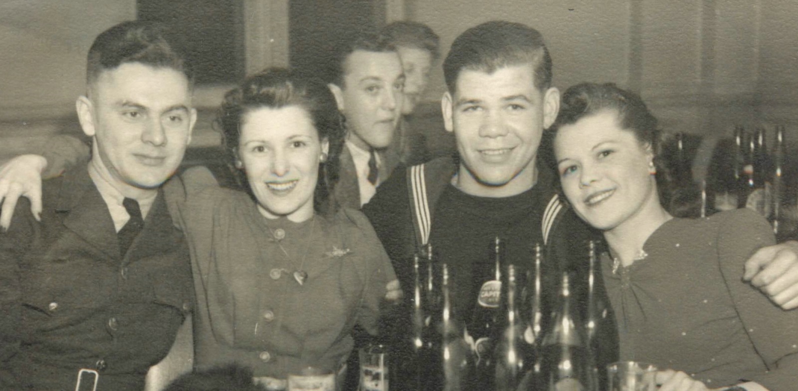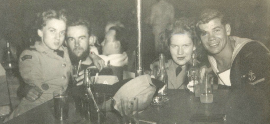 (MB114) Marshall Burns with Micky Clarke C.W.A.C and Eric Carey with date (MB115) Marshall Burns with sisters Audrey and Evelyn with Ken Ford - Dec 1942 (MB116) Refit leave, Jun 1944 - Marshall Burns (left) and Eric Carey with dates