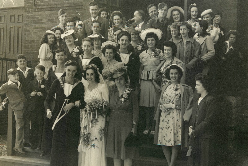 (MB119) Marshall Burns attending the naval wedding of his friend Eric Carey.