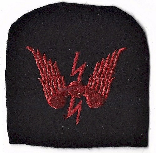 (GG01) Portrait of Tel George Godsall circa May 1942 (GG02) George's Telegraphist trade badge (GG03) HMCS SKEENA jacket patch (GG04) Training and Active Service page from Certificate of Service