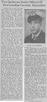 (RB06) Flimsie showing LCdr Robert Brown, RCN(R), demobilized 10 Jan 1946 (RB07) Article on Lt Robert Brown and Lt Renaud St Laurent appointed as senior officers (C.O. and X.O. respectively) of HMCS KINCARDINE (RB08) Poem - The Lone Wolf - Author O.V.C. 16 Feb 1941 (RB09) Subject: Wave, Description of (RB10)