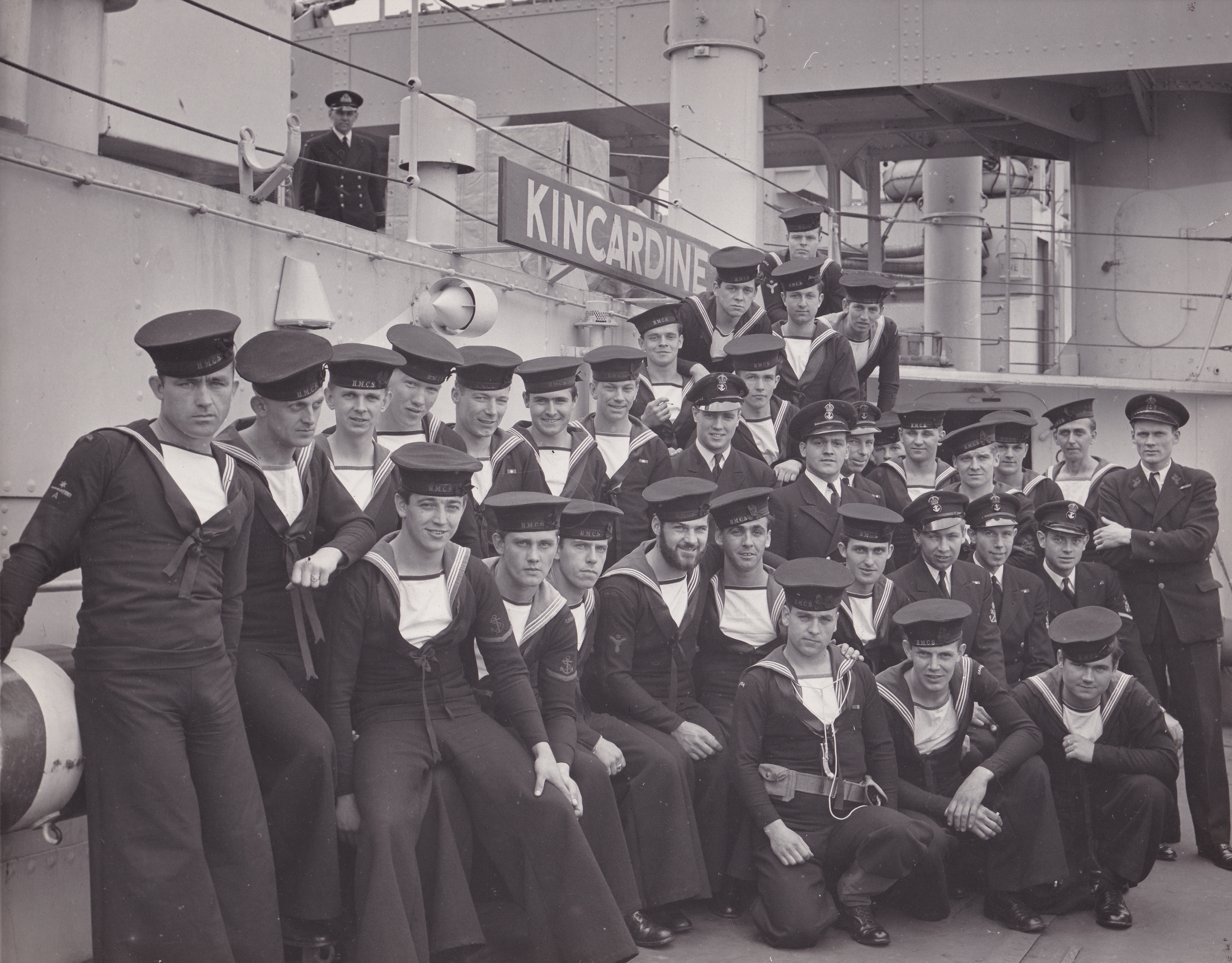 This photo has been posted, with crew numbered for identification, on the ship's company photo page for HMCS KINCARDINE