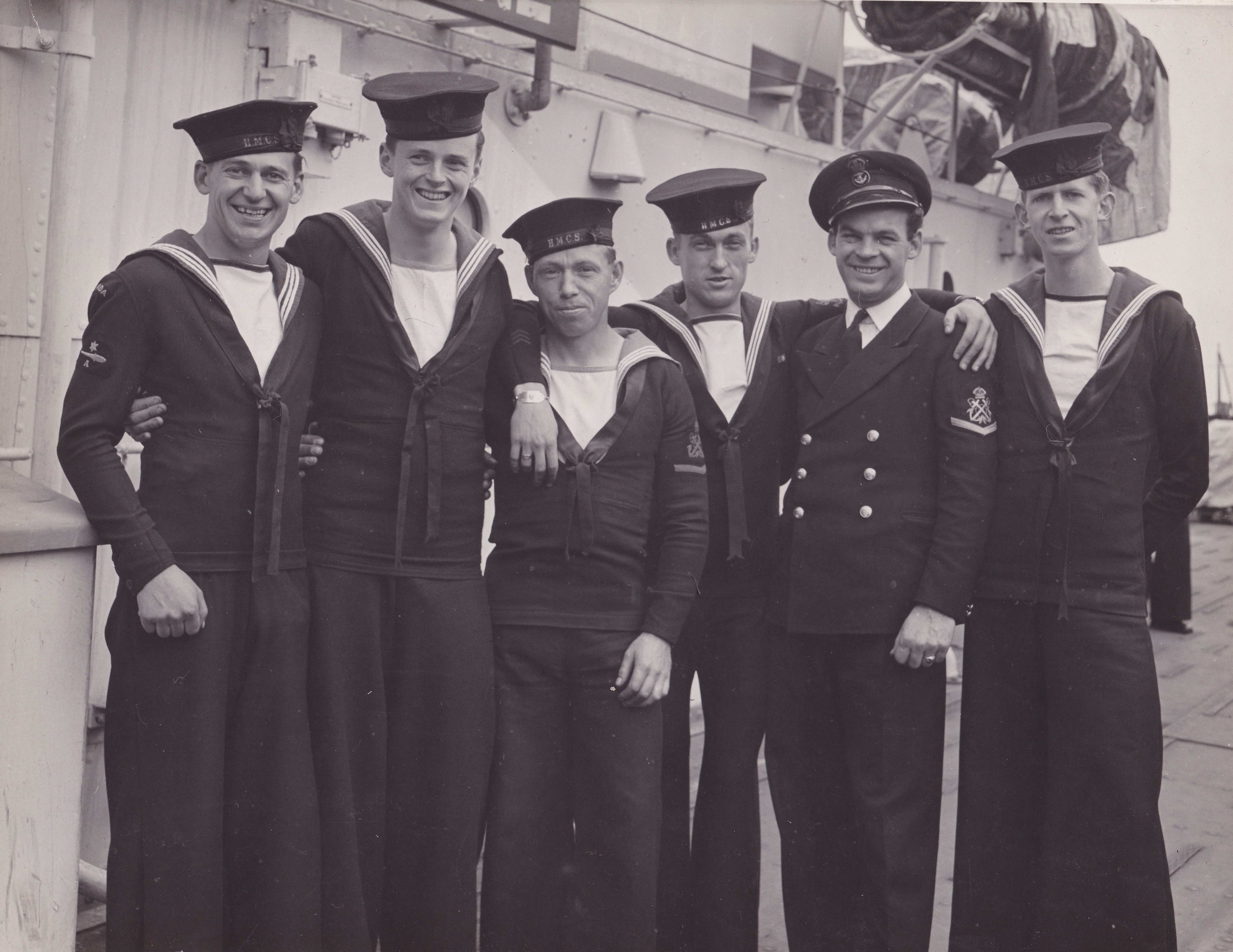 LCdr Desmond Piers - front, 4th from left // possibly Cdr William Puxley, RN - front, 4th from right // Lt Robert Brown - front, 1st on right