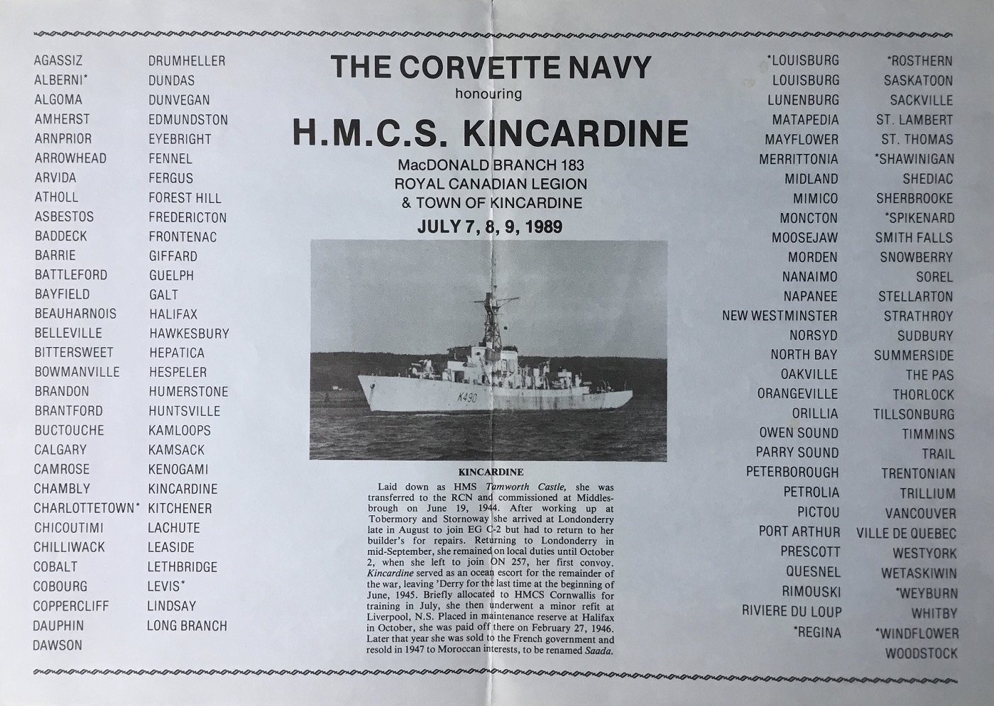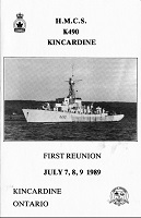HMCS KINCARDNE 1st Reunion July 9-10, 1989 Kincardine, Ontario