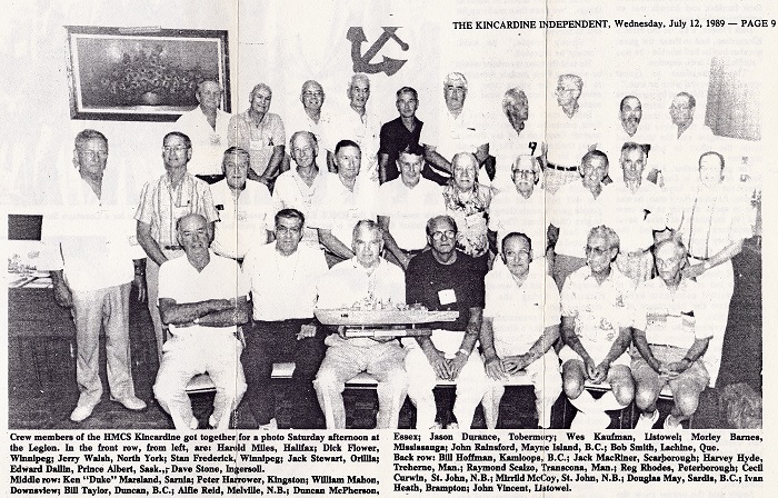 Crew members from HMCS KINCARDINE at the 1st KINCARDINE Reunion The Kincardine Independent, Wed, 12 Jul 1989