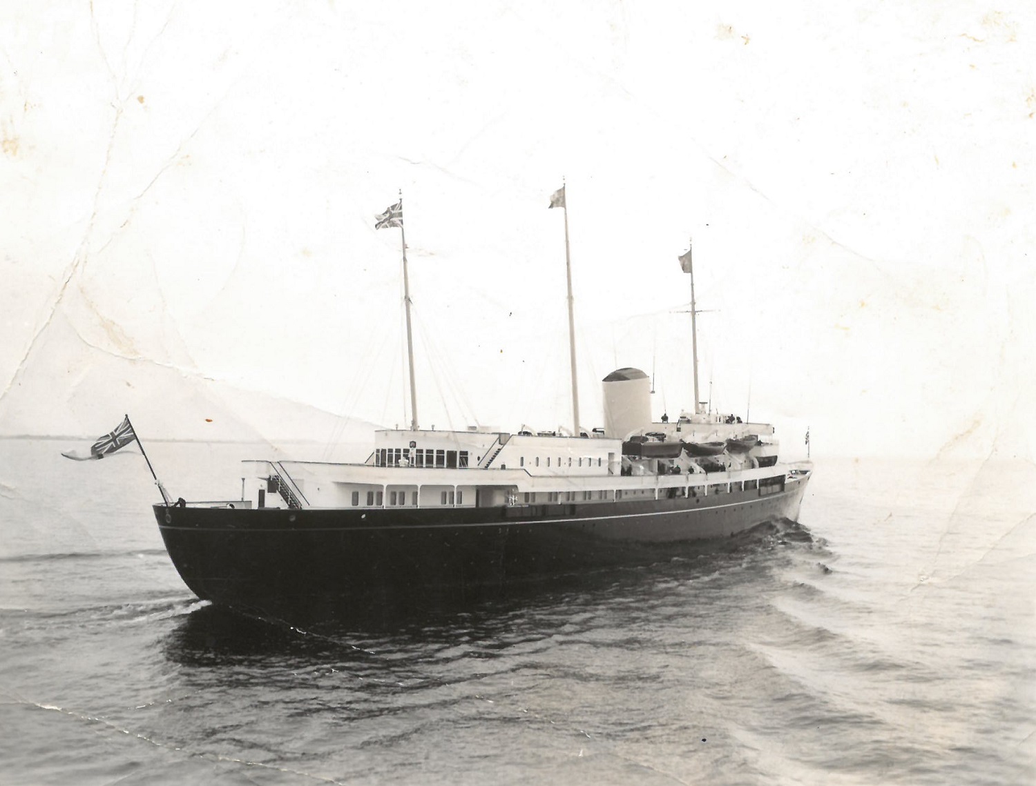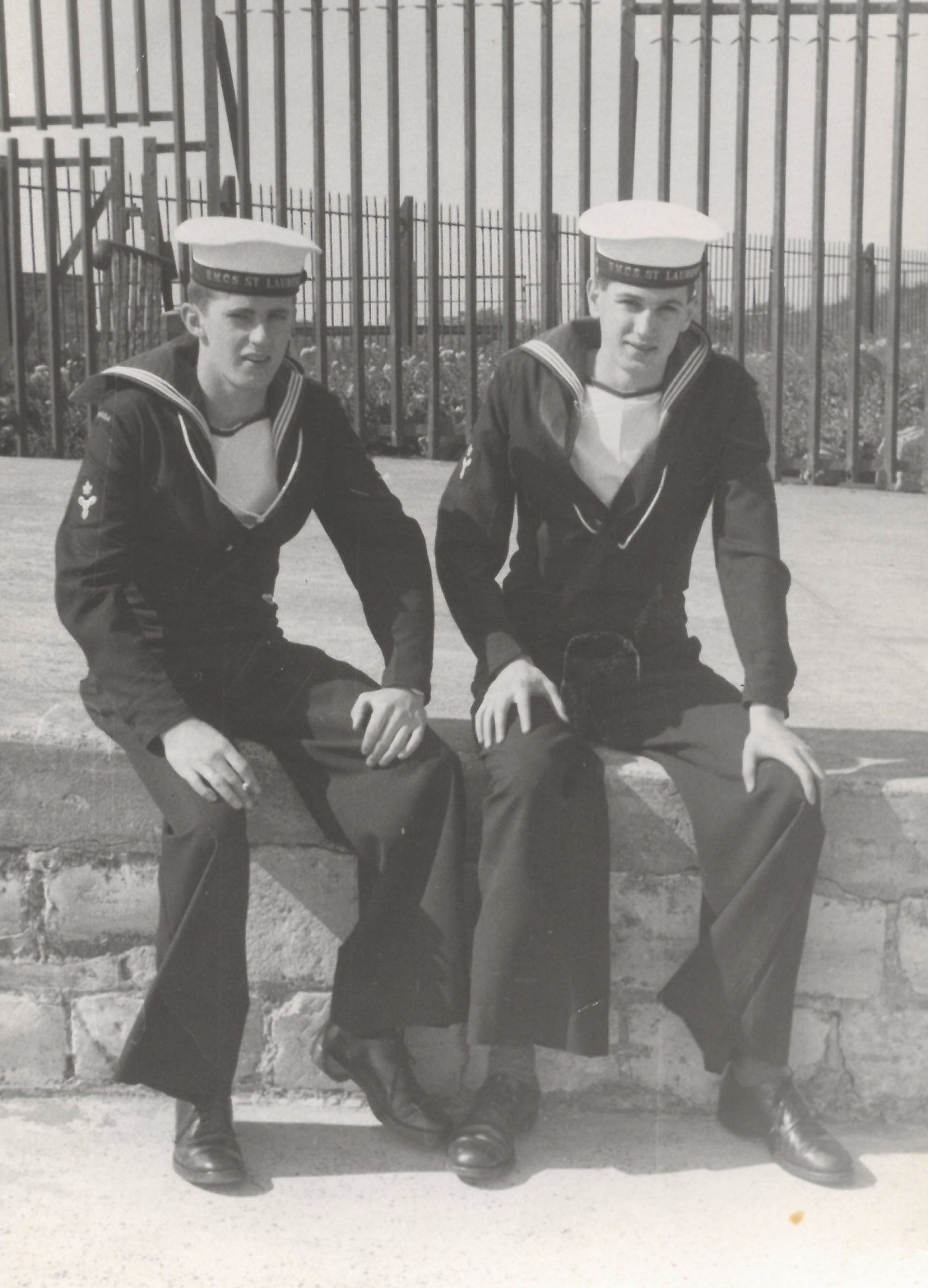 (RB11) Ray Baillargeon and shipmate off HMCS ST LAURENT ashore - possibly in England - May-Jul 1956 (RB12) HMCS ST LAURENT 205 (RB13) HMCS ST LAURENT, escort to the Royal Yacht BRITANNIA, departing Mildelborought (?sp) Fort, Stockholm, Sweden - 1956 (RB14) HMY BRITANNIA - 1956