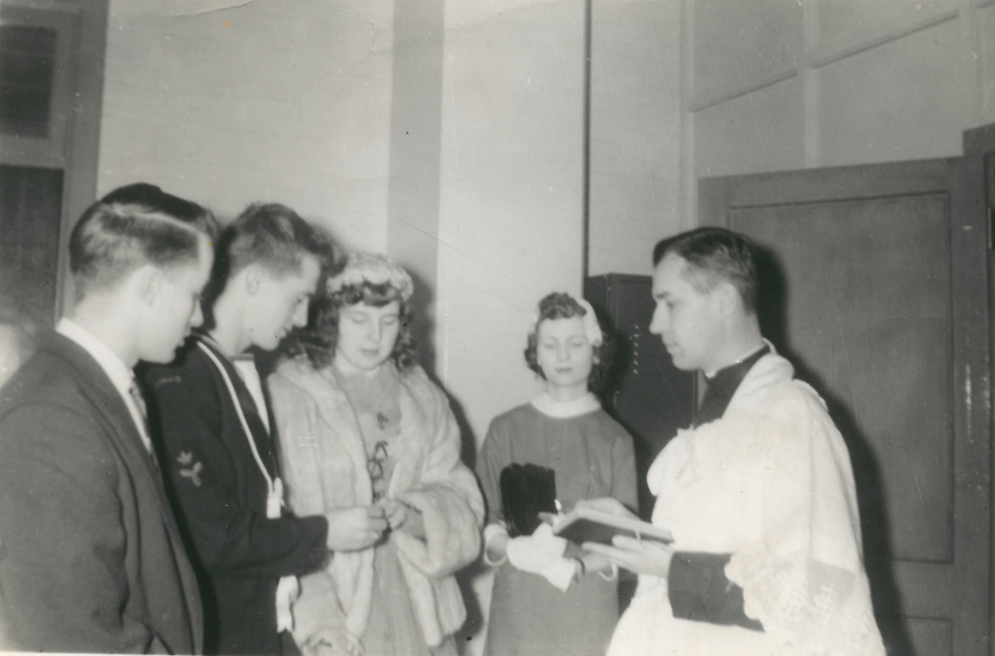 (RB06) Ray Baillargeon - Feb 1958 (RB07) A young Raymond Baillargeon in his uniform marrying his young bride Norma Hiltz, February 15, 1958, the officiate is R.C. Padre Pelletier, ceremony was at the chapel at HMCS STADACONA (RB08) Raymond Baillargeon with his new Bride Norma Hiltz (RB09) St. Pierre de Rome - 1956 (RB10) LS Ray Baillargeon on HMCS CHAUDIERE- location unknown