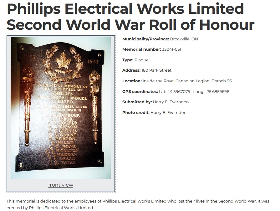 Lt Grant died when his ship, HMCS ALBERNI, was torpedoed and sunk in the English Channel on 21 Aug 1944 by U-480, southeast of the Isle of Wight. Fifty-nine of her ship's company lost their lives. He is commemorated on the Phillips Electrical Works Limited Second World War Roll of Honour.
