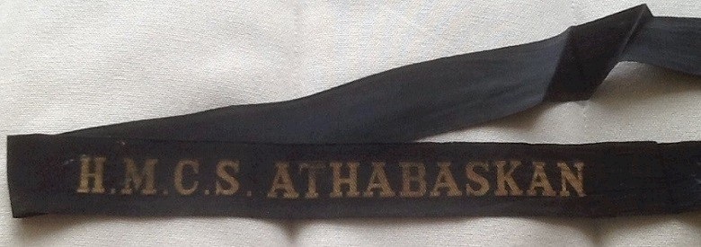 Ernest Anderson's HMCS ATHABASKAN cap tally. Note - this is a post Second World War cap tally for HMCS ATHABASKAN 2nd of name