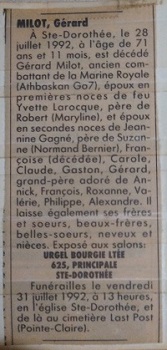 Gérard Milot is buried in the Last Post Cemetery, Montréal, QC.