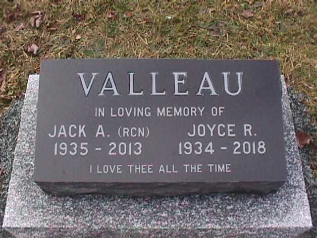 VALLEAU, John (Jack) - It is with great sadness that we announce the passing of John on March 5th in the VG Site, QEII. He served 35 years in the Navy and after retirement enjoyed spending his winters in Florida and summers in Ingramport. He is survived by his loving wife, Joyce; sister, Joyce Revoy, Kingston, Ont.; sister-in-law, Barbara Cossar, and husband Jack; brother-in-law, Raymond Shay and wife Laurel and many nieces and nephews. No funeral by request.