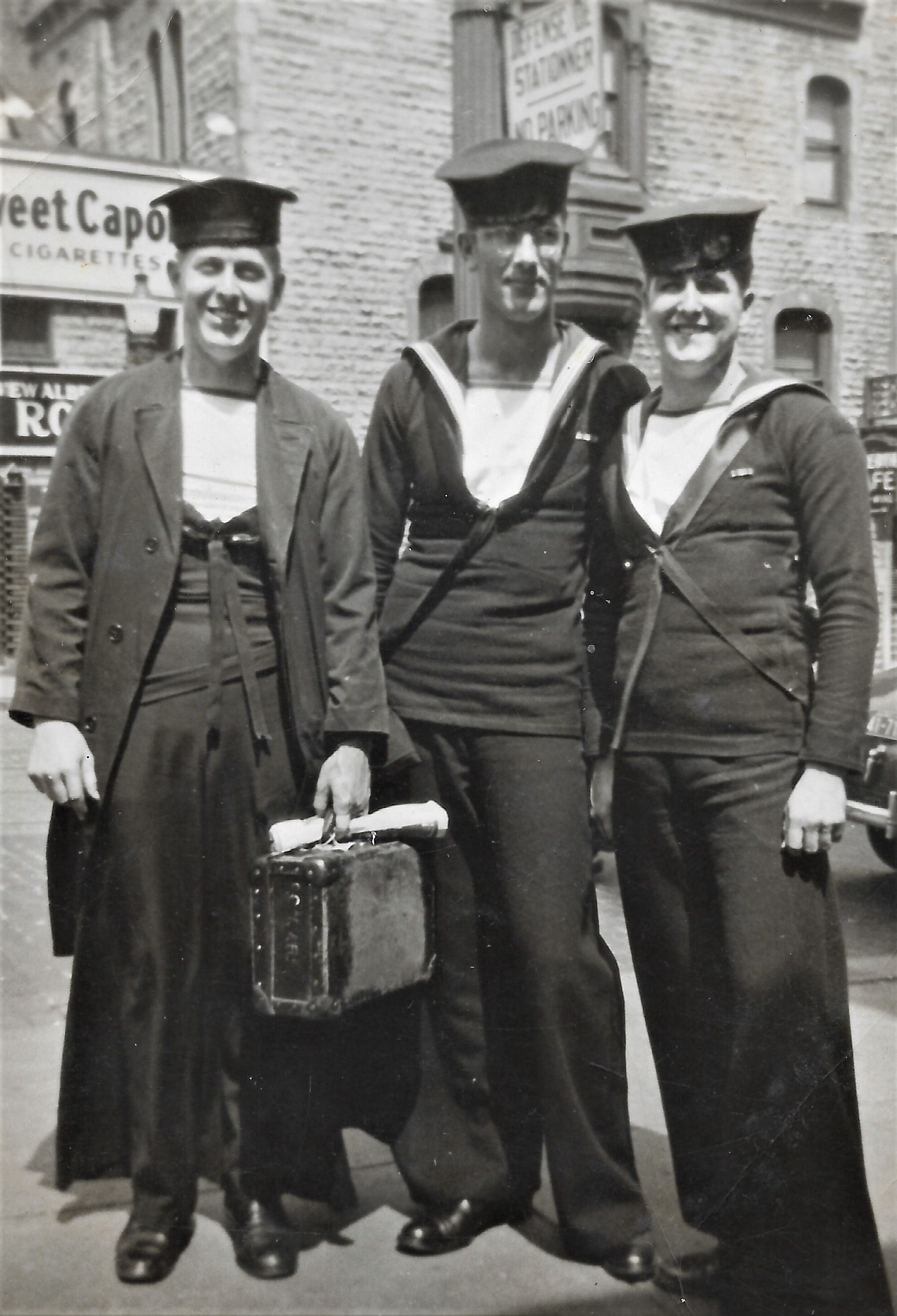 (RD16) Lt Madgwick on HMCS IROQUOIS G89 (RD17) Sailors on HMCS IROQUOIS G89 Russel Dewe, back, 1st on left - Eric Snell, back, centre. Two of other sailors in the photo are B. Evasik and Robert Willis though it is not known which sailors they are in the photo (RD18) Russell Dewe on HMCS IROQUOIS G89 (RD19) Russell Dewe (centre) other two sailors unknown on HMCS IROQUOIS G89 (RD20) Unknown sailor on HMCS IROQUOIS G89
