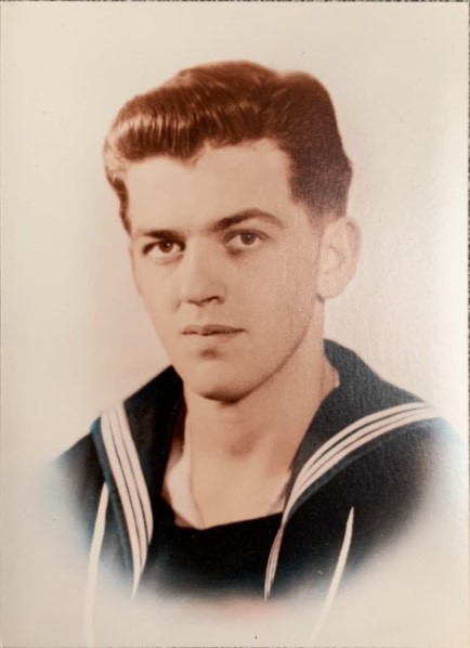 (RMS003) Able Seaman Robert Schroth (front right) across from his date at a ship's company function.