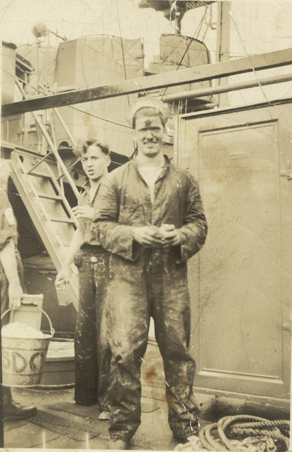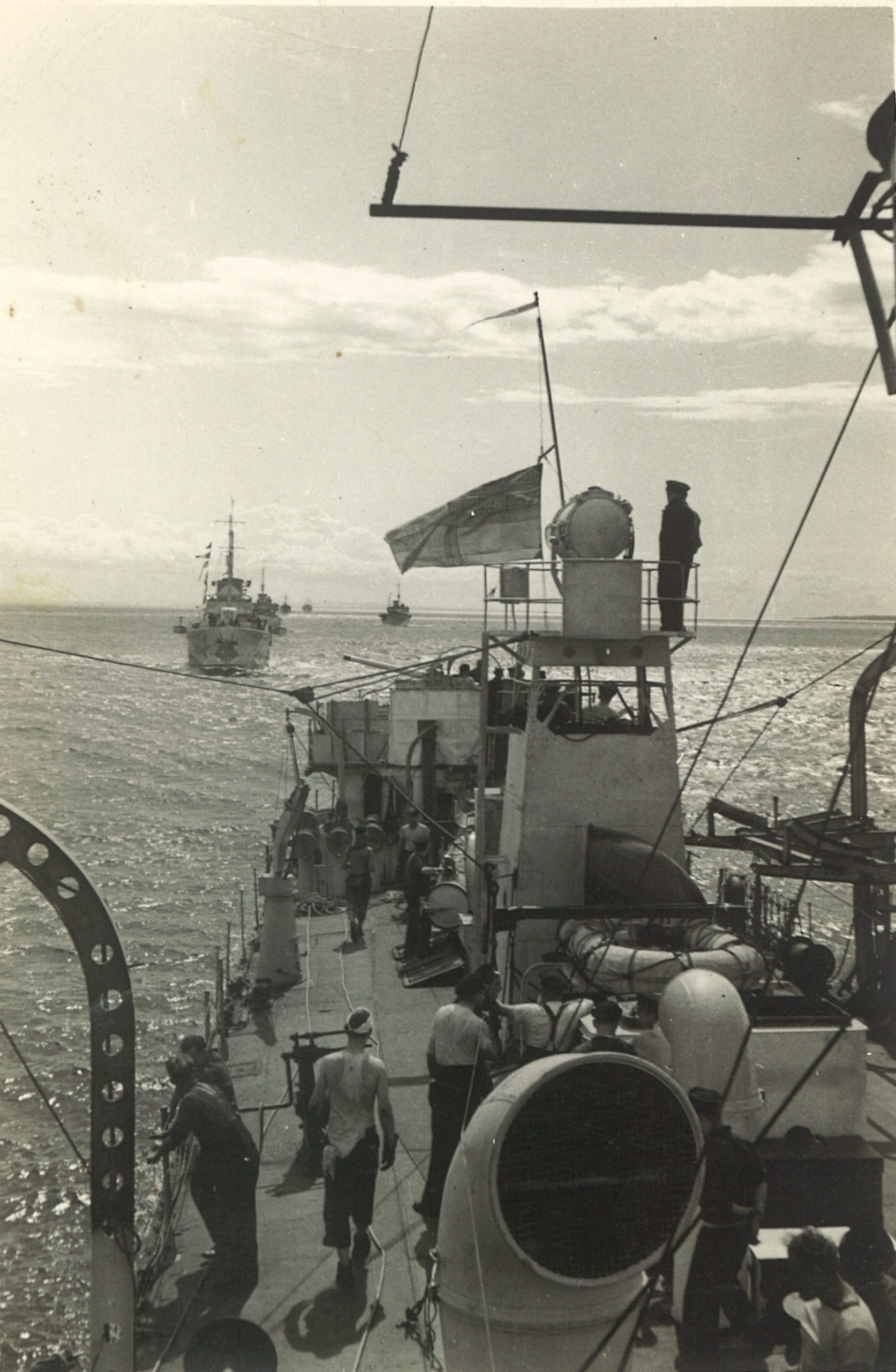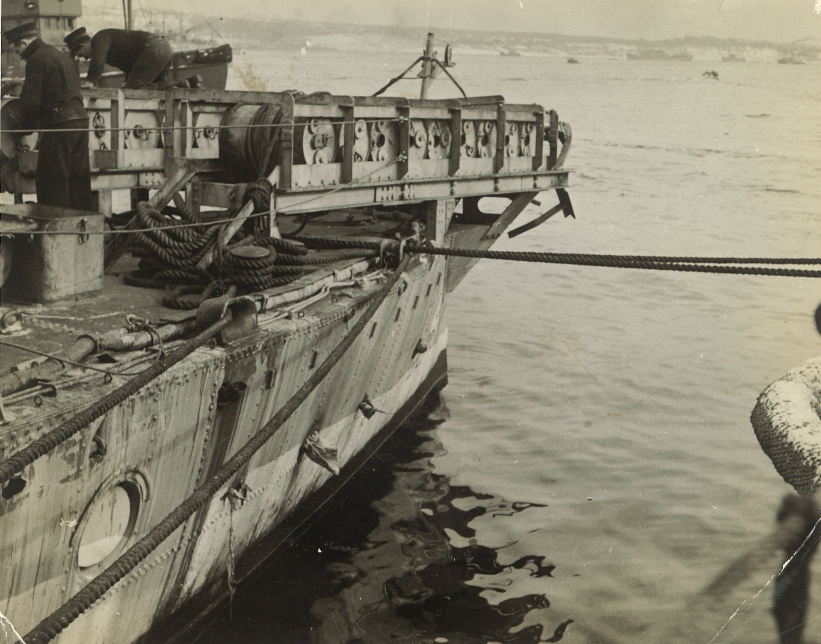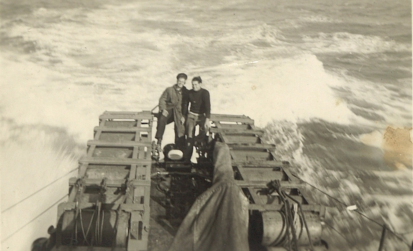 (CC28) HMCS ANNAPOLIS towing a corvette (CC29) L-R: Unknown, Campbell, Simms, Kells on HMCS ANNAPOLIS (CC30) HMCS ANNAPOLIS - looking forward from just aft of the torpedo tubes (CC31) Unidentified sailors working on the depth charges on HMCS ANNAPOLIS (CC32) LTO Claude Campbell (left) with shipmate on the stern of HMCS ANNAPOLIS