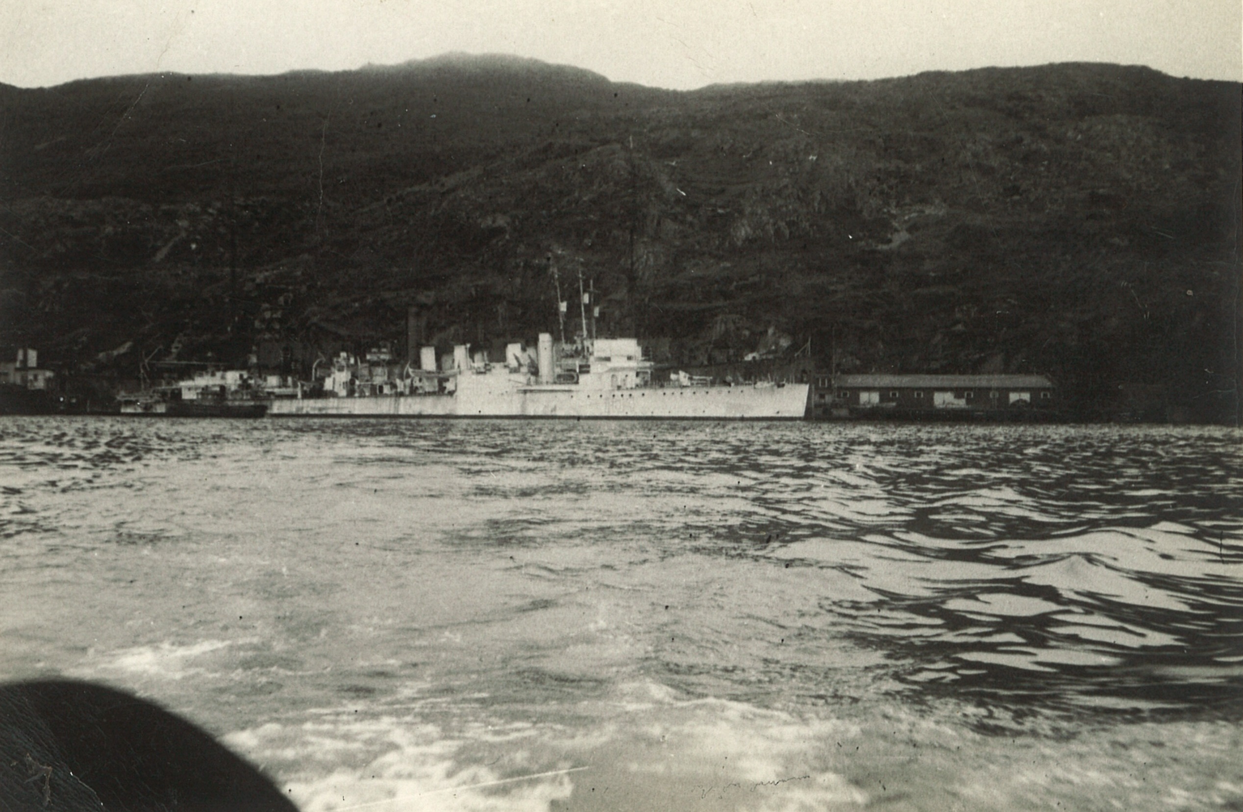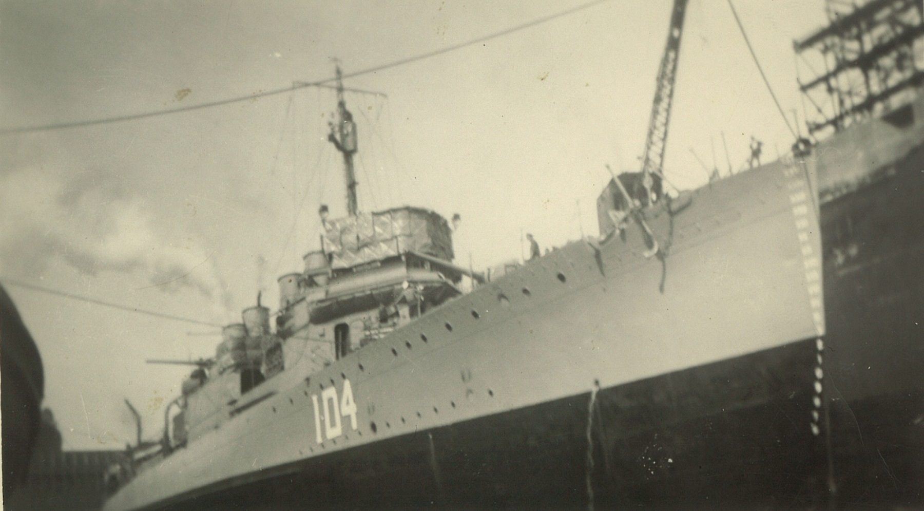 (CC38) HMCS ANNAPOLIS in dry dock. This photo is shortly after her commission in the RCN as she still has all four of the funnels (CC39) No 1 gun on HMCS ANNAPOLIS (CC40) HMCS HAMILTON I24 (CC41) Battleship HMS REVENGE (CC42) Shipmates ashore - Campbell, Kells, Lawrence