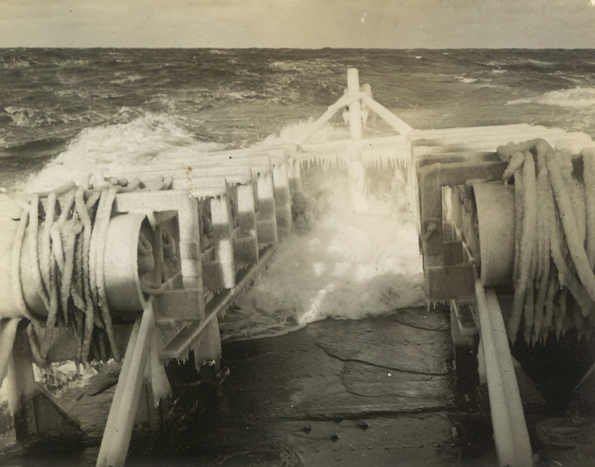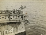 (CC23) HMCS ANNAPOLIS I04 (outboard ship) at St. John's, NFLD (CC24 L-R: Kennedy, Campbell, Simms, Gill, Dicks, Kneen on HMCS ANNAPOLIS (CC25) Bringing in the whaler on HMCS ANNAPOLIS (CC26) Depth charge exploding astern of HMCS ANNAPOLIS during a training exercise (CC27) Ice-covered depth charges on the quarterdeck of HMCS ANNAPOLIS (webmaster's note: even in moderate seas her quarterdeck was awash)