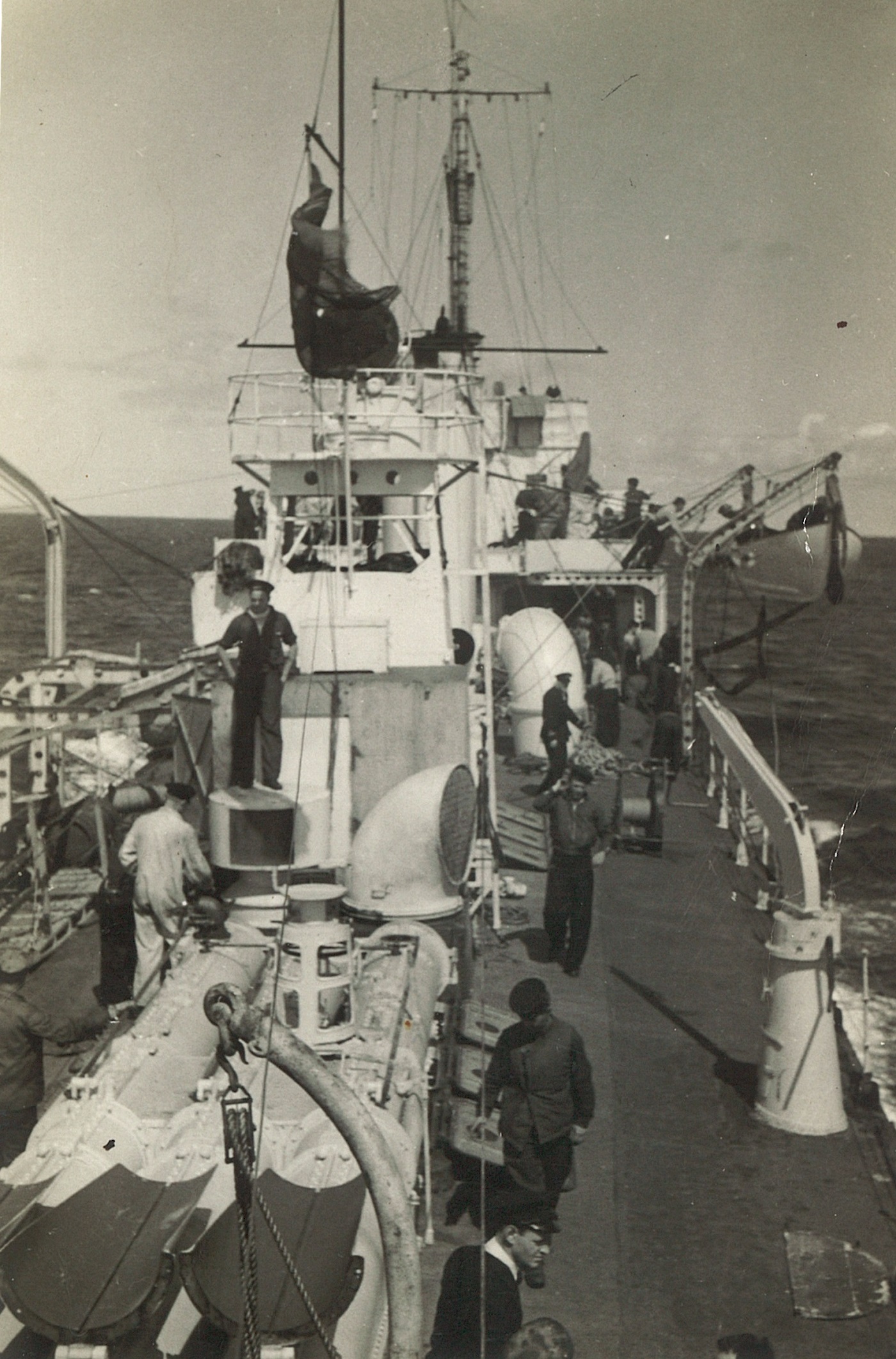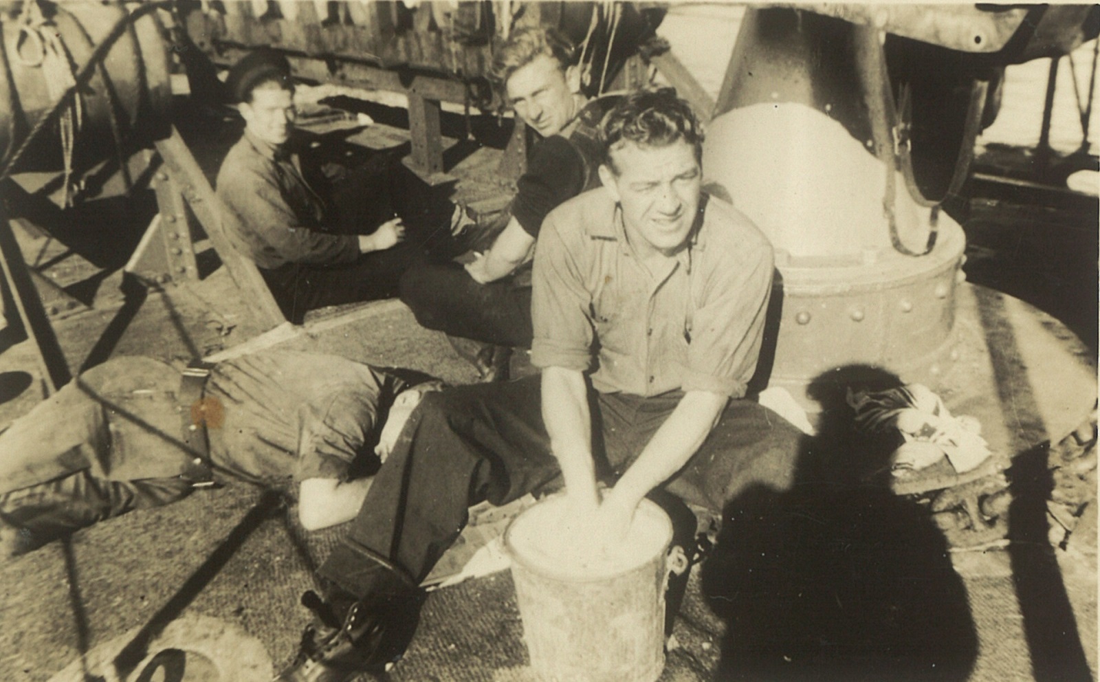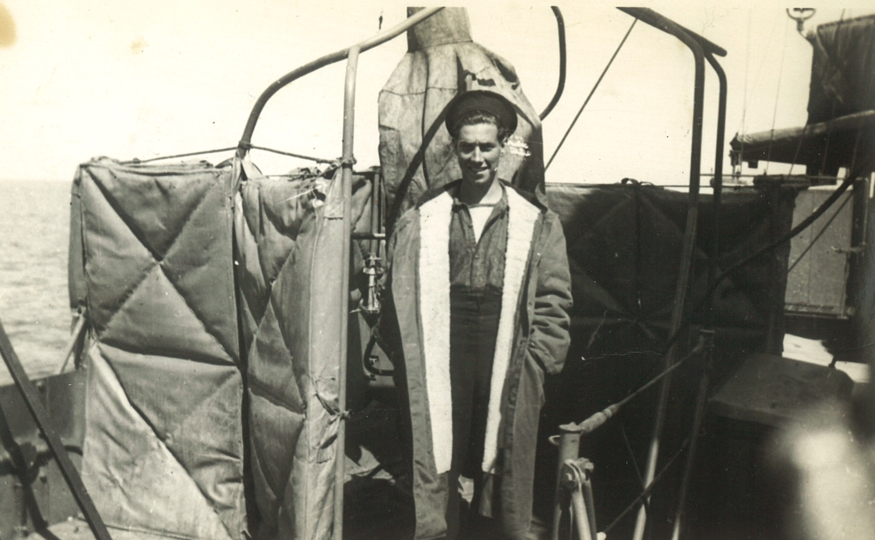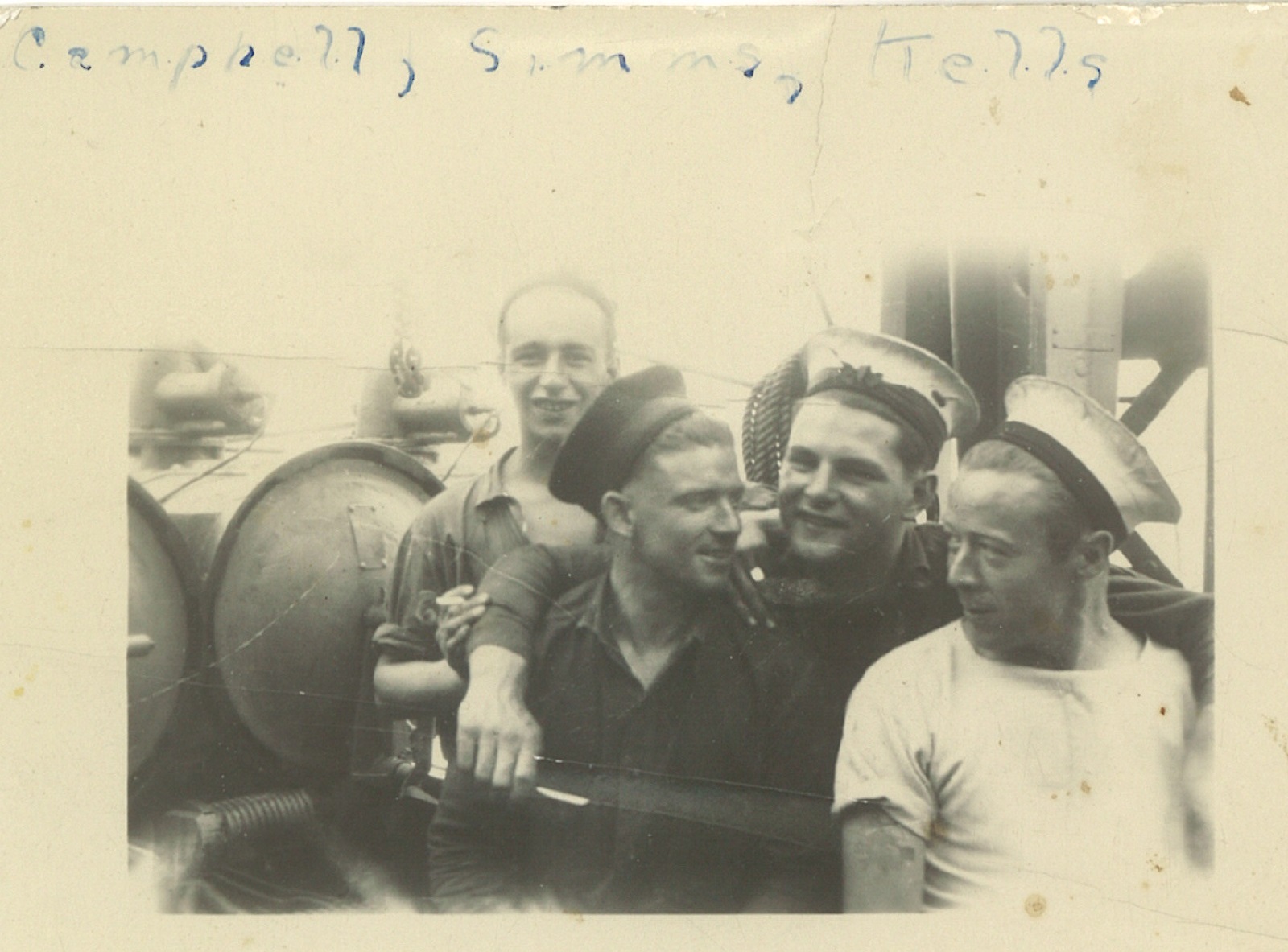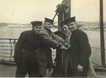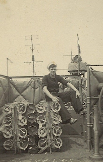 (CC53) Sailors on the quarter deck of HMCS ANNAPOLIS. Claude Campbell 1st on right (CC54) Unidentified sailor on HMCS ANNAPOLIS (CC55) Sailors on the quarterdeck of HMCS ANNAPOLIS - Claude Campbell 1st on right (CC56) Torpedo tubes on HMCS ANNAPOLIS (CC57) A corvette and a Dutch submarine