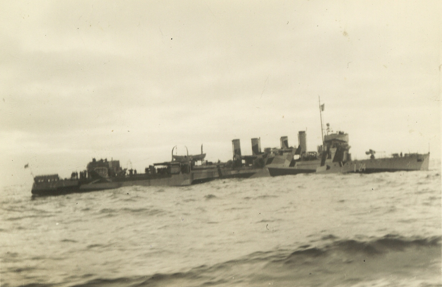 (CC43) Sailors on the quarterdeck of HMCS ANNAPOLIS (CC44) HMCS HAMILTON I24 (CC45) "On watch at guns" on HMCS ANNAPOLIS (CC46) USS WOOLSEY DD-437 (CC47) Unidentified 4-stacker