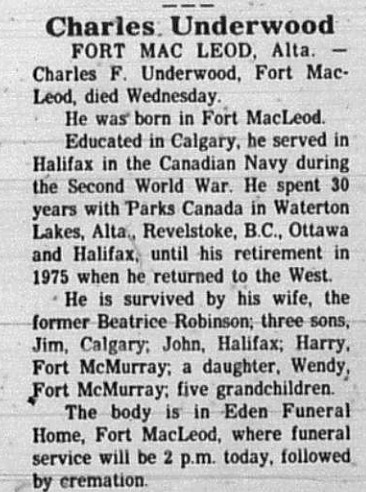 Died: 15 Jan 1986, Fort MacLeod, Alberta